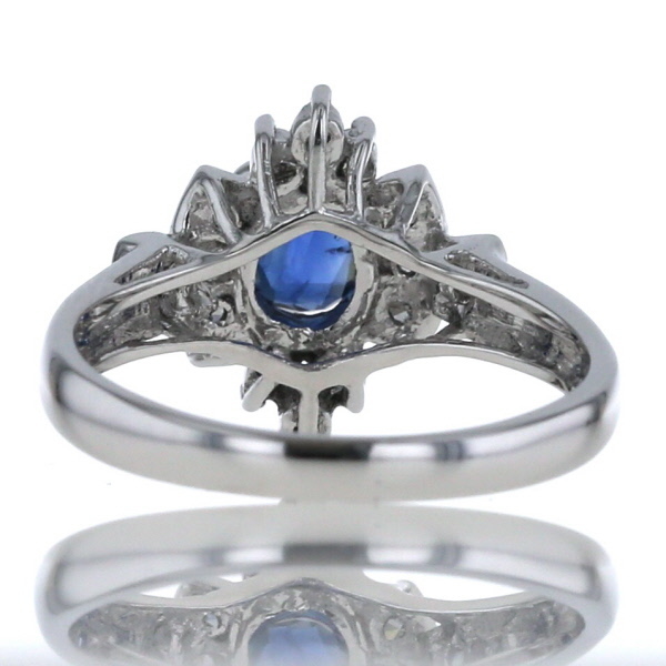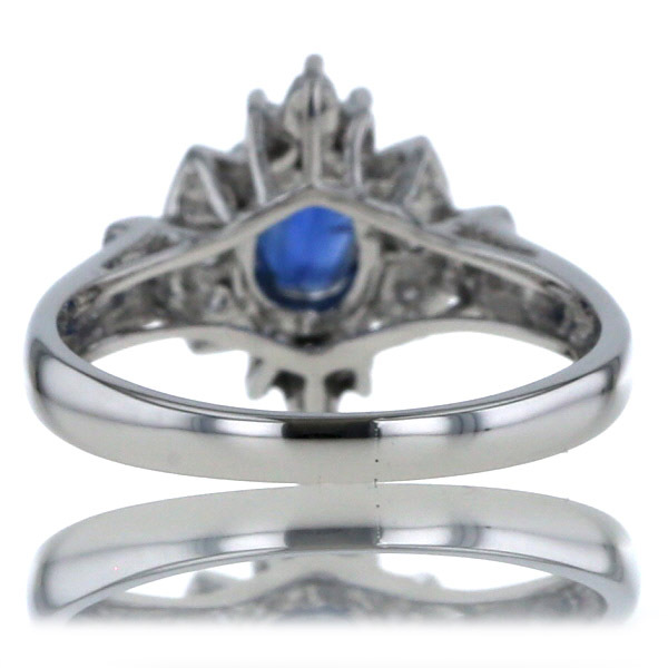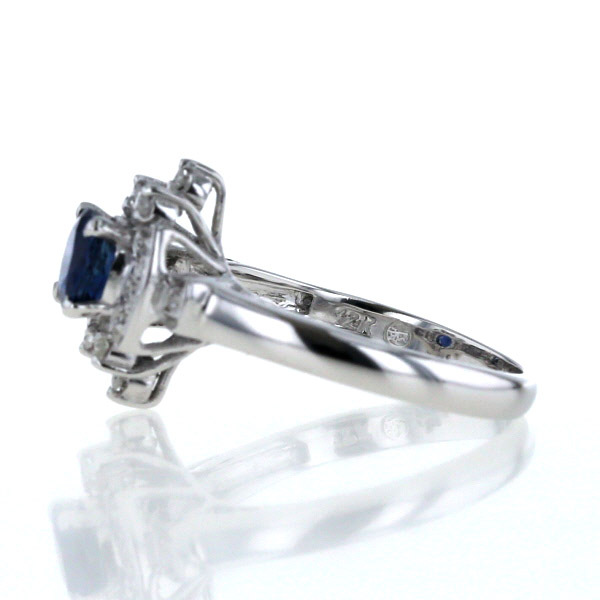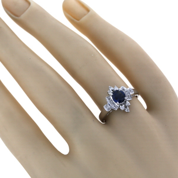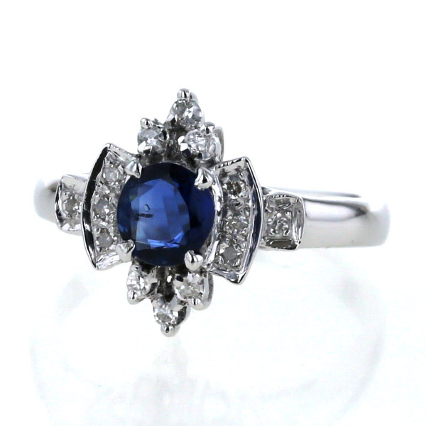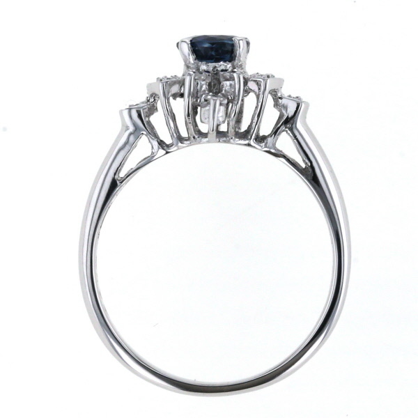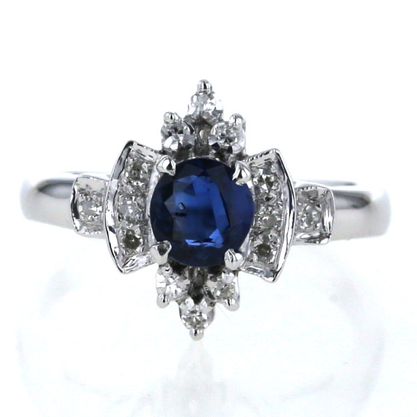 | 商品紹介 | 鮮やかなブルーカラーのサファイアとダイヤモンドがセッティングされた気品のあるデザインのホワイトゴールドリングです。 |