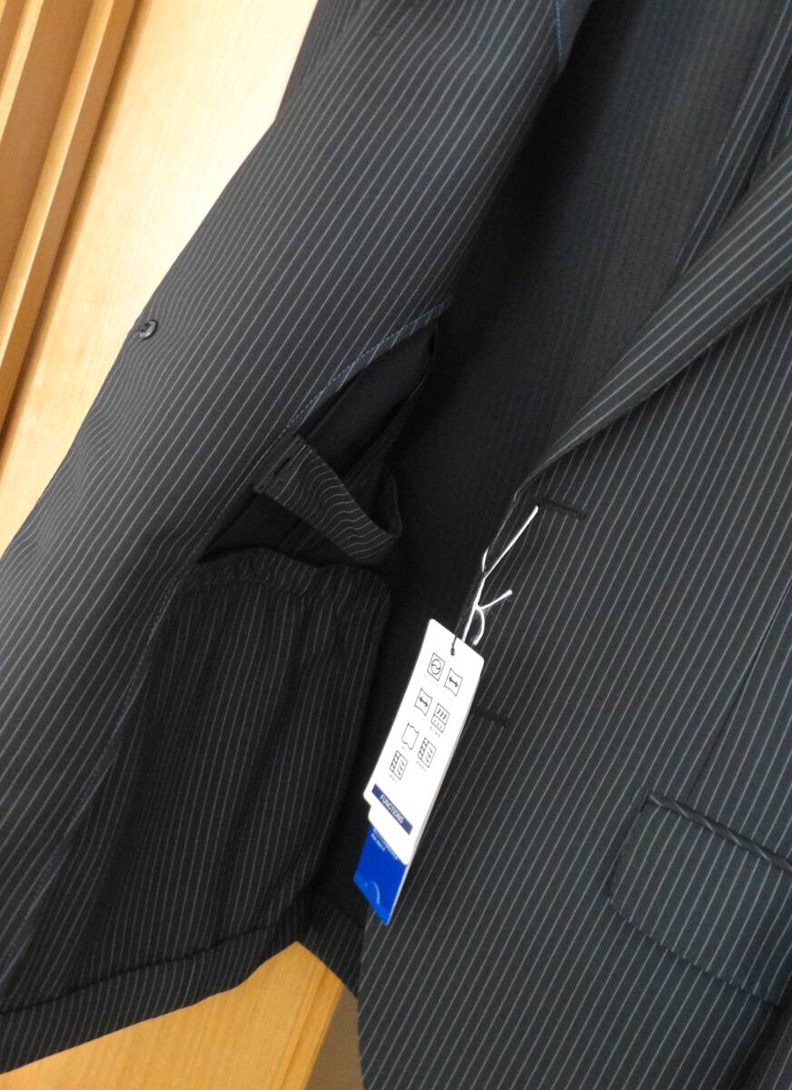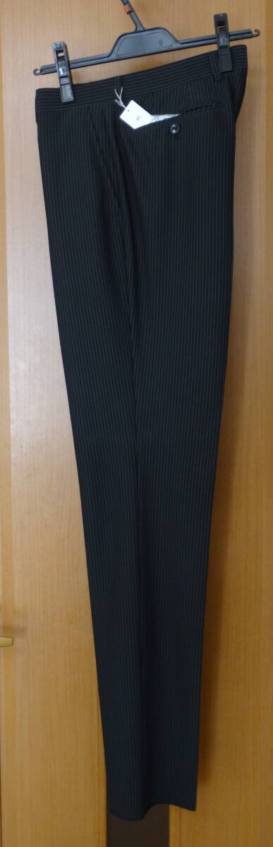 スラックスはウエスト82cmでノータックです。経済的な洗えるタイプです。スーツ用のケースはサービスです。