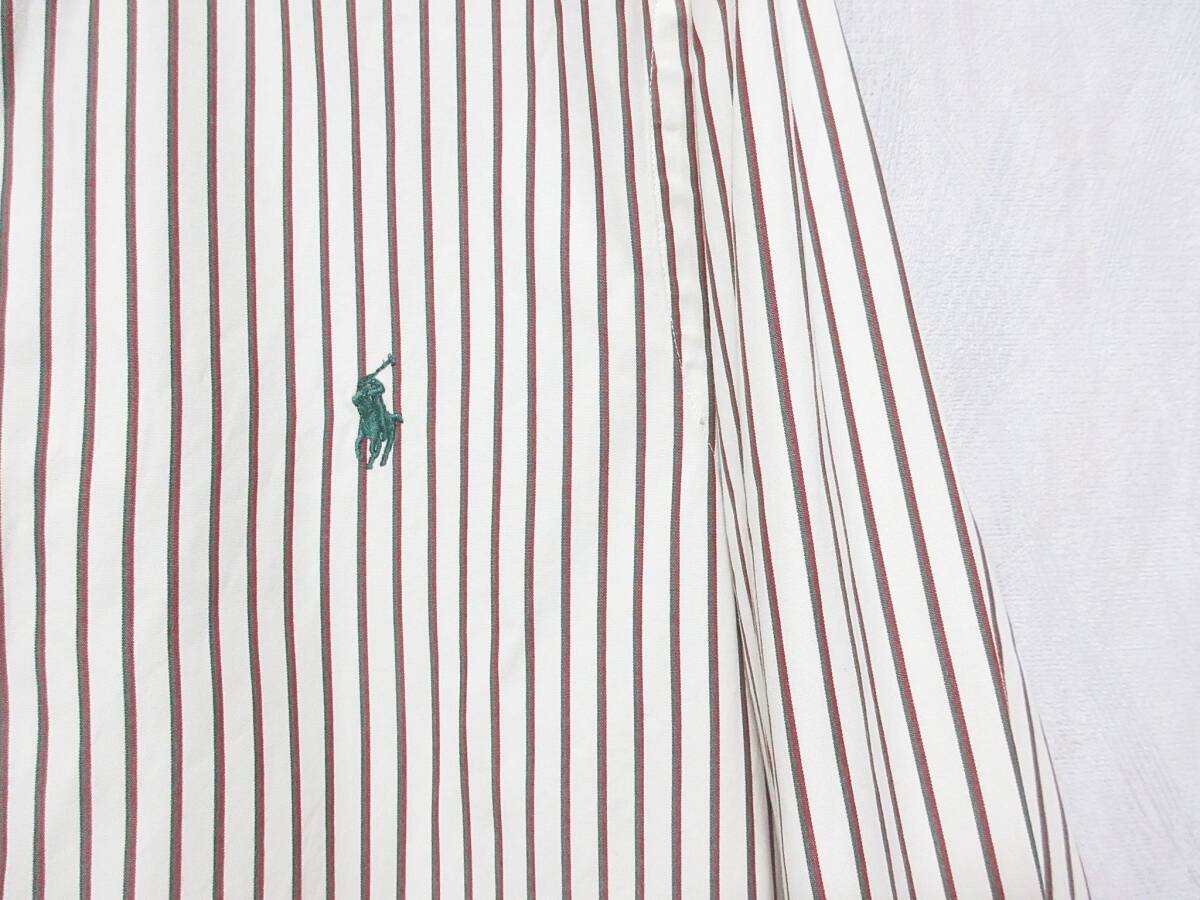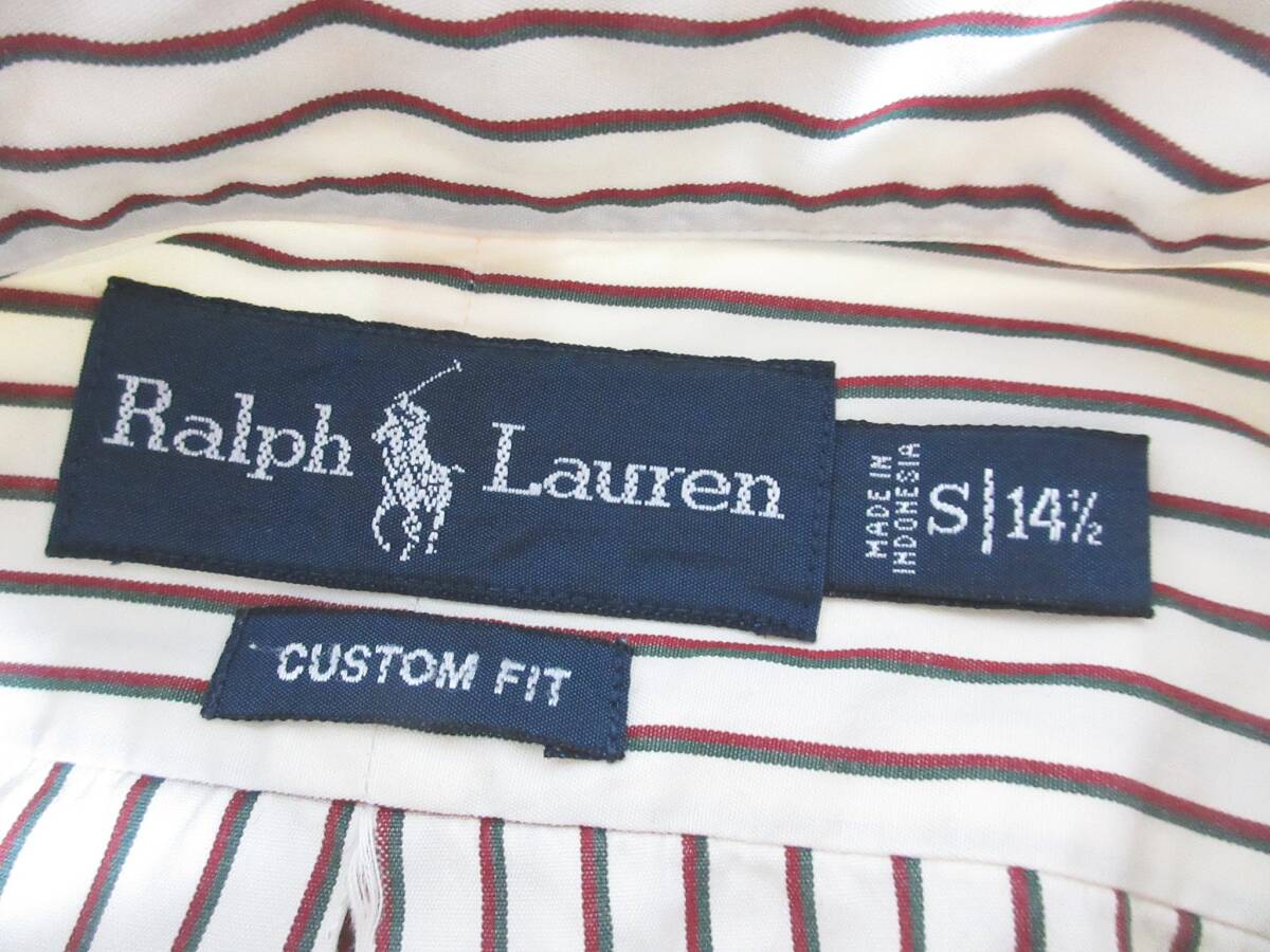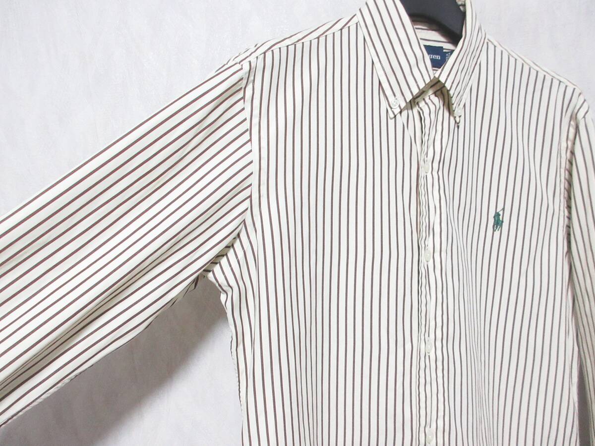 ラルフローレン RALPH LAUREN CUSTOM FIT ストライプ 長袖 シャツ 薄ベージュ S 亥5446