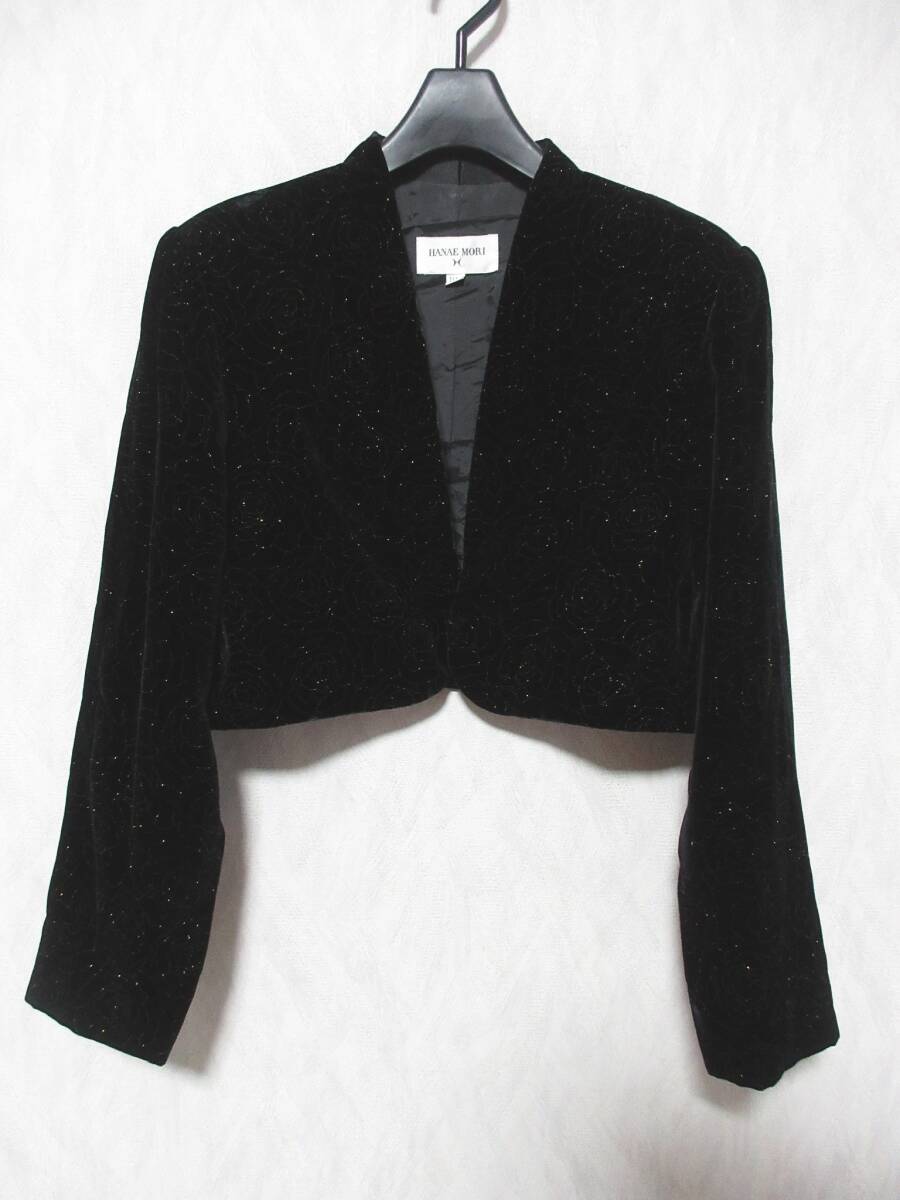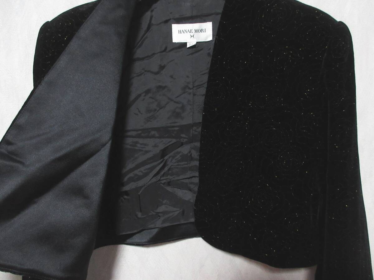 HANAE MORI ハナエモリ 花柄 ベロア ノーカラージャケット レディース 11A3 ブラック  kn2329
