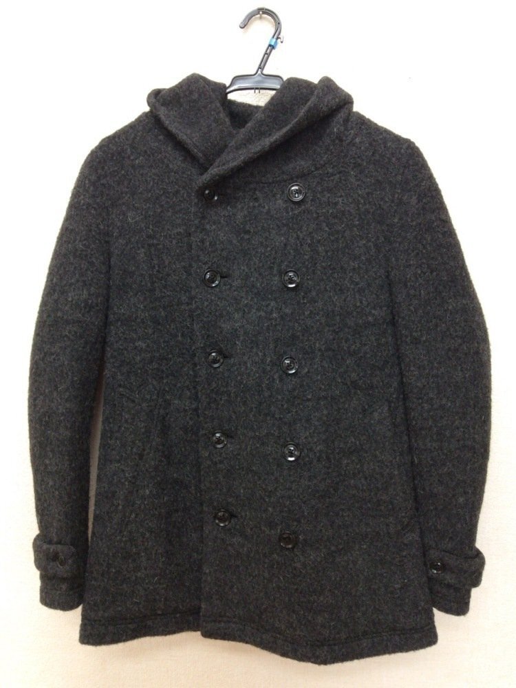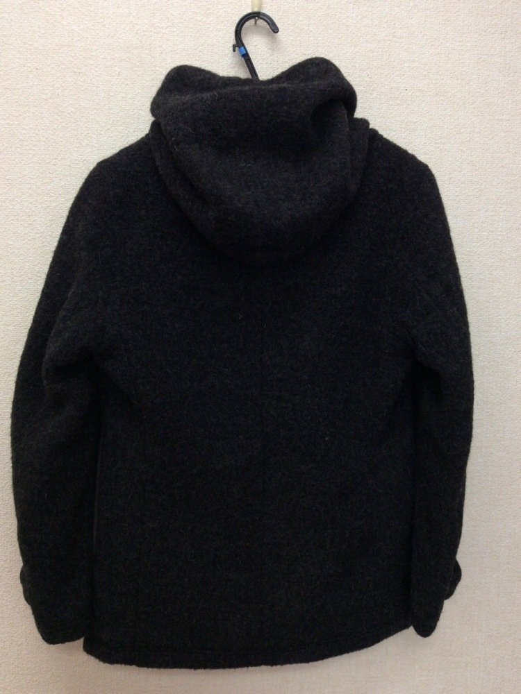 管理番号:132325 モルガンHOMME チャコールグレーのコート 中綿入り フード付き 表示サイズ:S 実寸(参考)