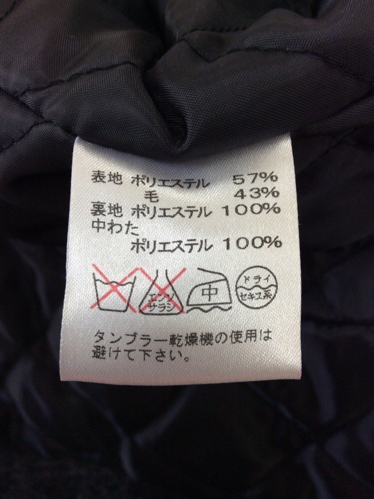 このお品は秋冬向けです。 表地はポリエステル57%、毛43% 裏地はポリエステル、中綿はポリエステル |
