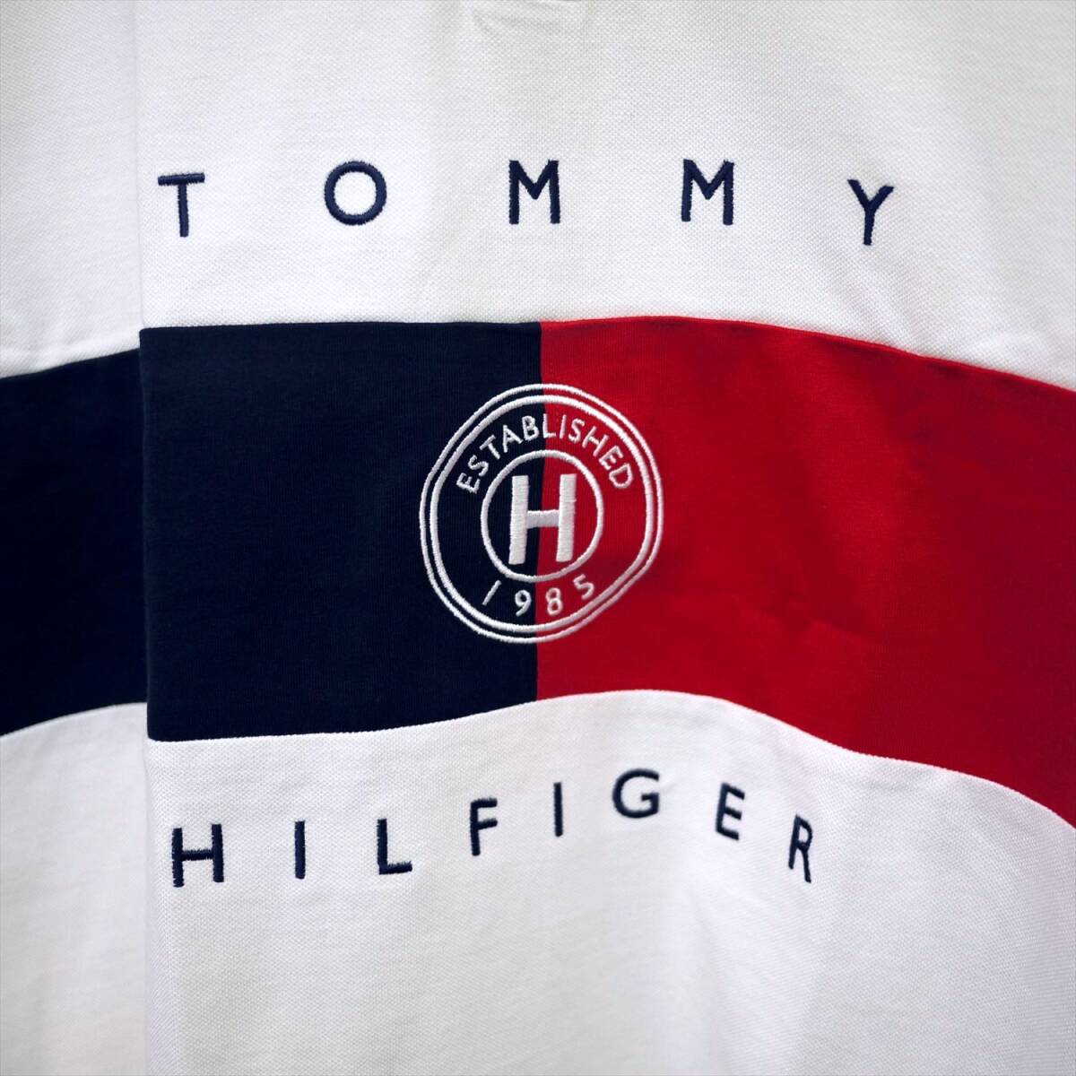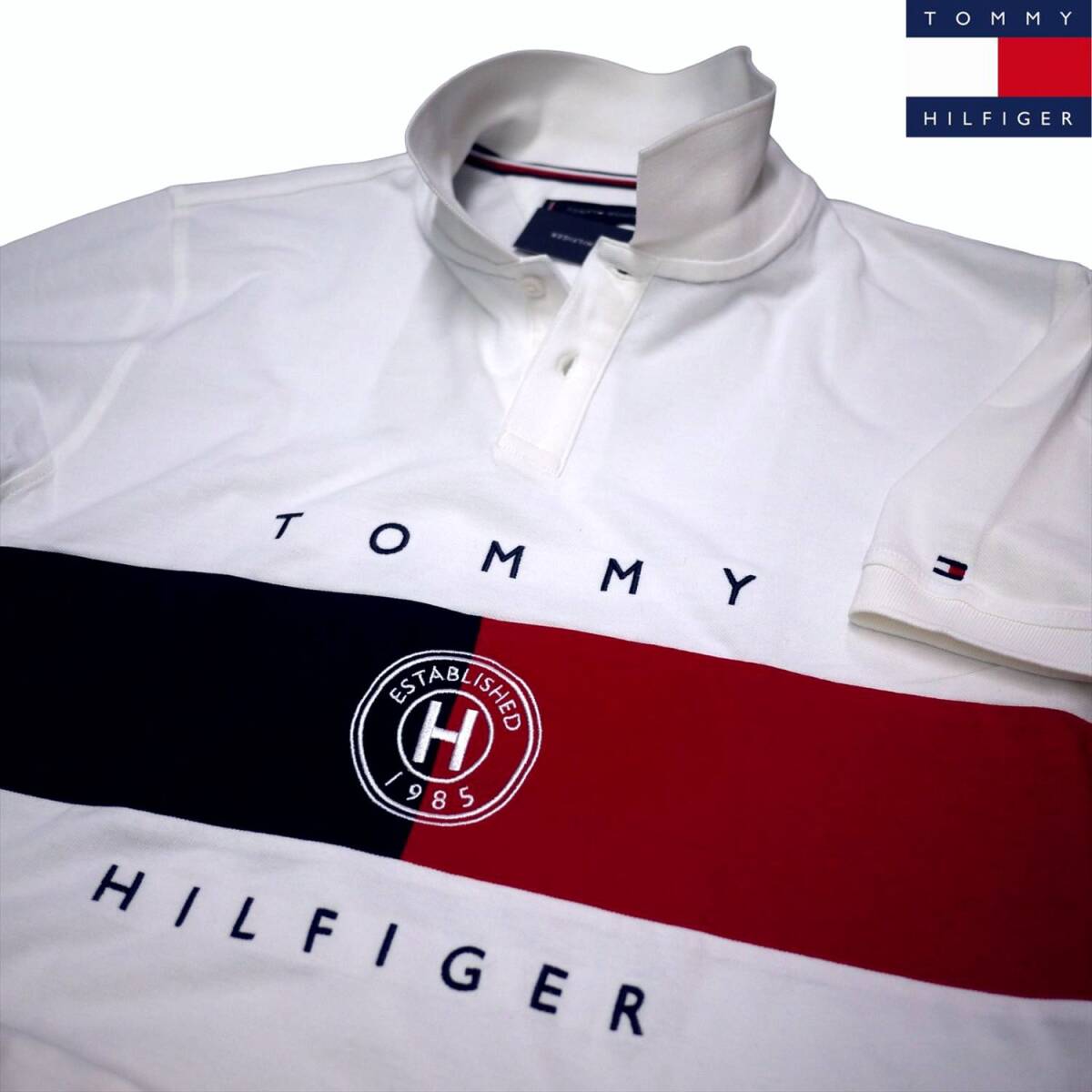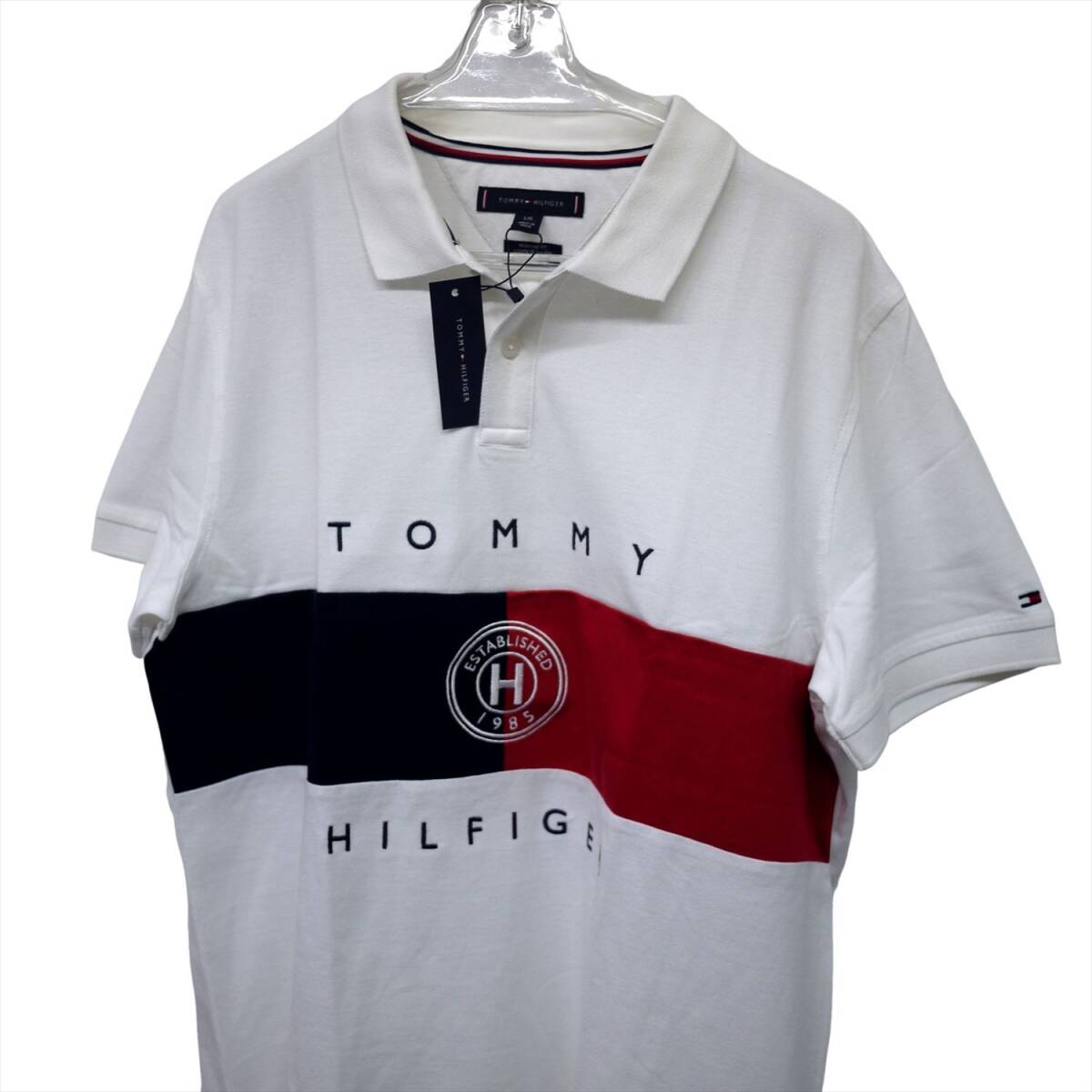 新品 トミーヒルフィガー 刺繍ロゴ ポロシャツ XXL (ホワイトxネイビーxレッド) ゴルフにも!TOMMY HILFIGER USAモデル /25bs304