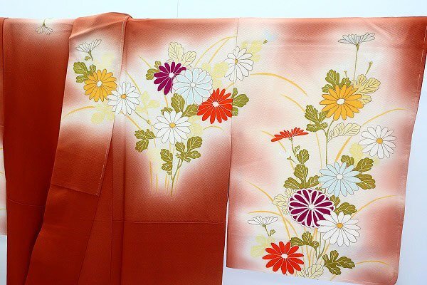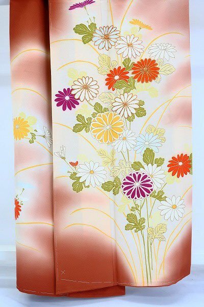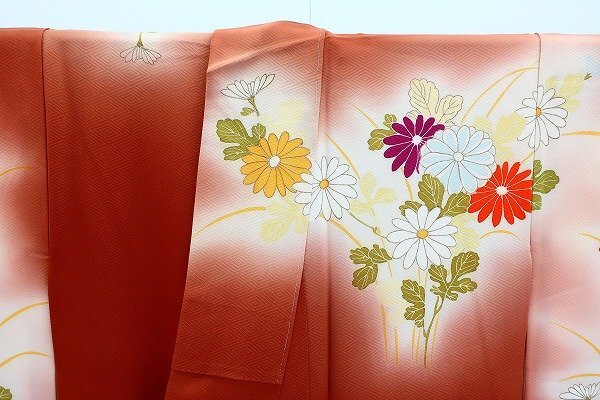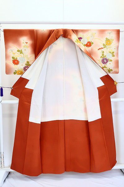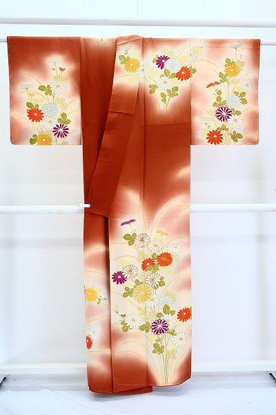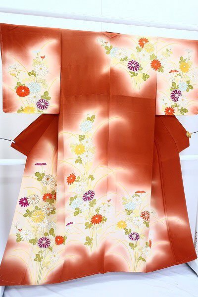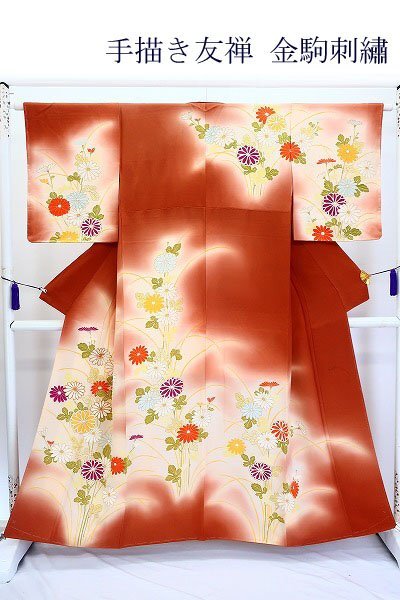 未使用品 訪問着 手描き友禅 京友禅 金駒刺繍 枝花 くすんだ朱色 身丈158.0cm 入学式 お洒落 上品 正絹 仕立て上がり 着物フィ m-7520 |