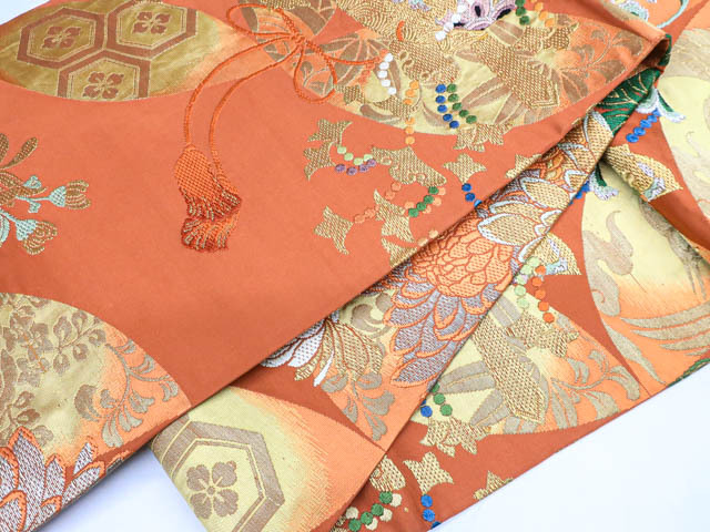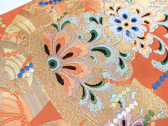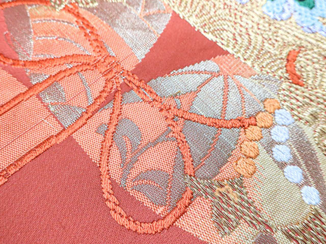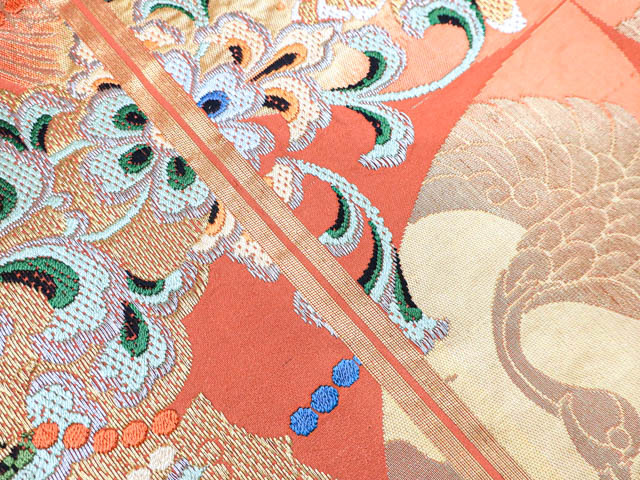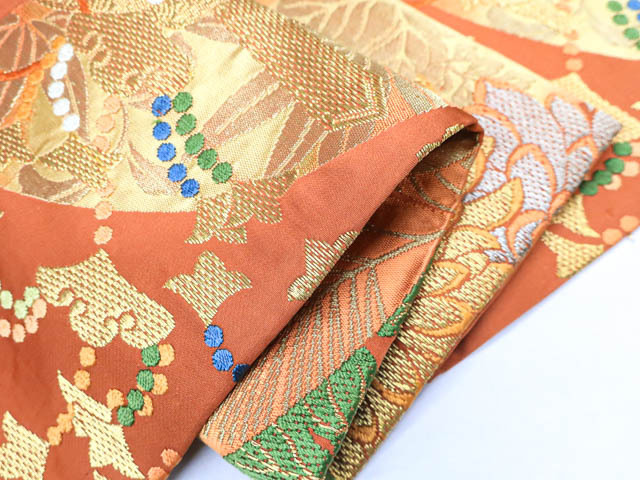 リサイクル商品のため、スレ・薄汚れ、糸飛び出しがございますがご着用いただけると存じます。 地色は赤茶です。 1枚目の画像が近いお色かと思われます。 素材は正絹です。 |