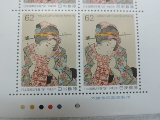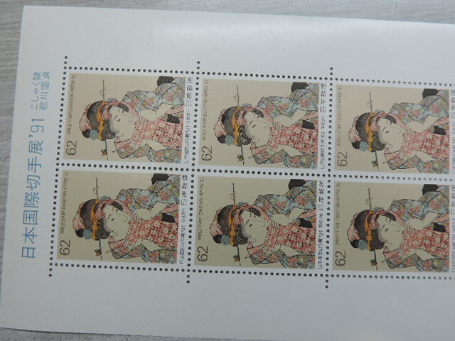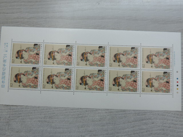 ★こしゃく娘・歌川国貞★ 日本国際切手展’91 平成3年 62円切手×10枚 620円分 額面割れ 新品・未使用