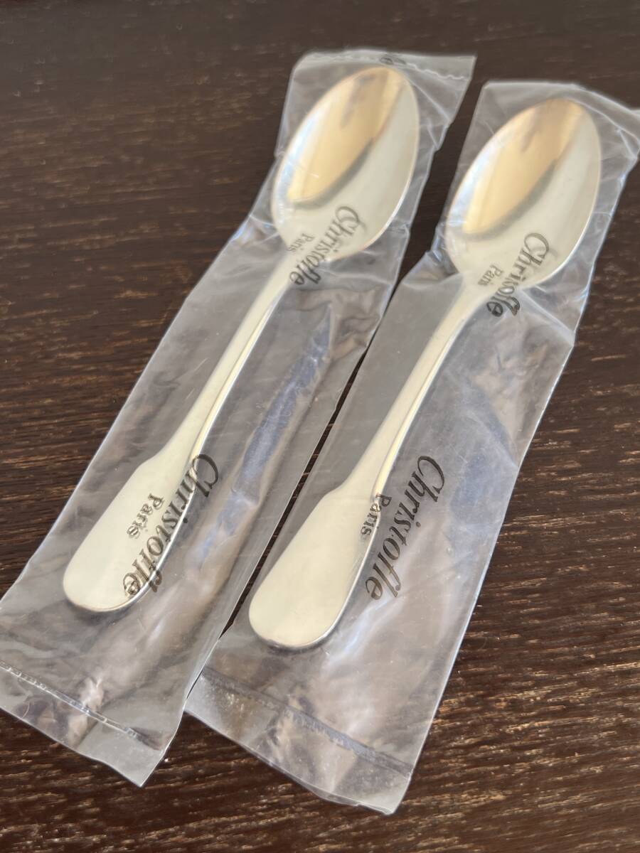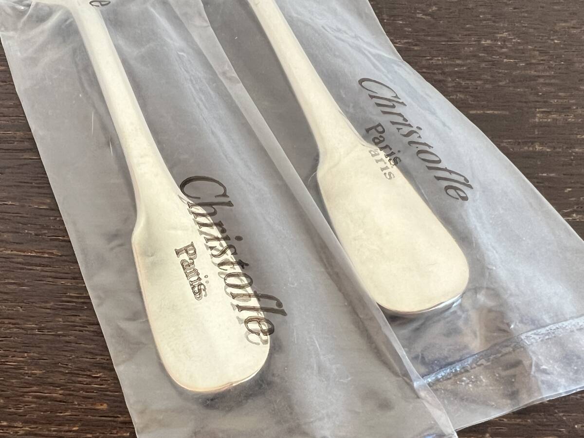 未使用 クリストフル クリュニー 純銀メッキ製 ティースプーン 2本セット 13.5cm CLUNY/449-3