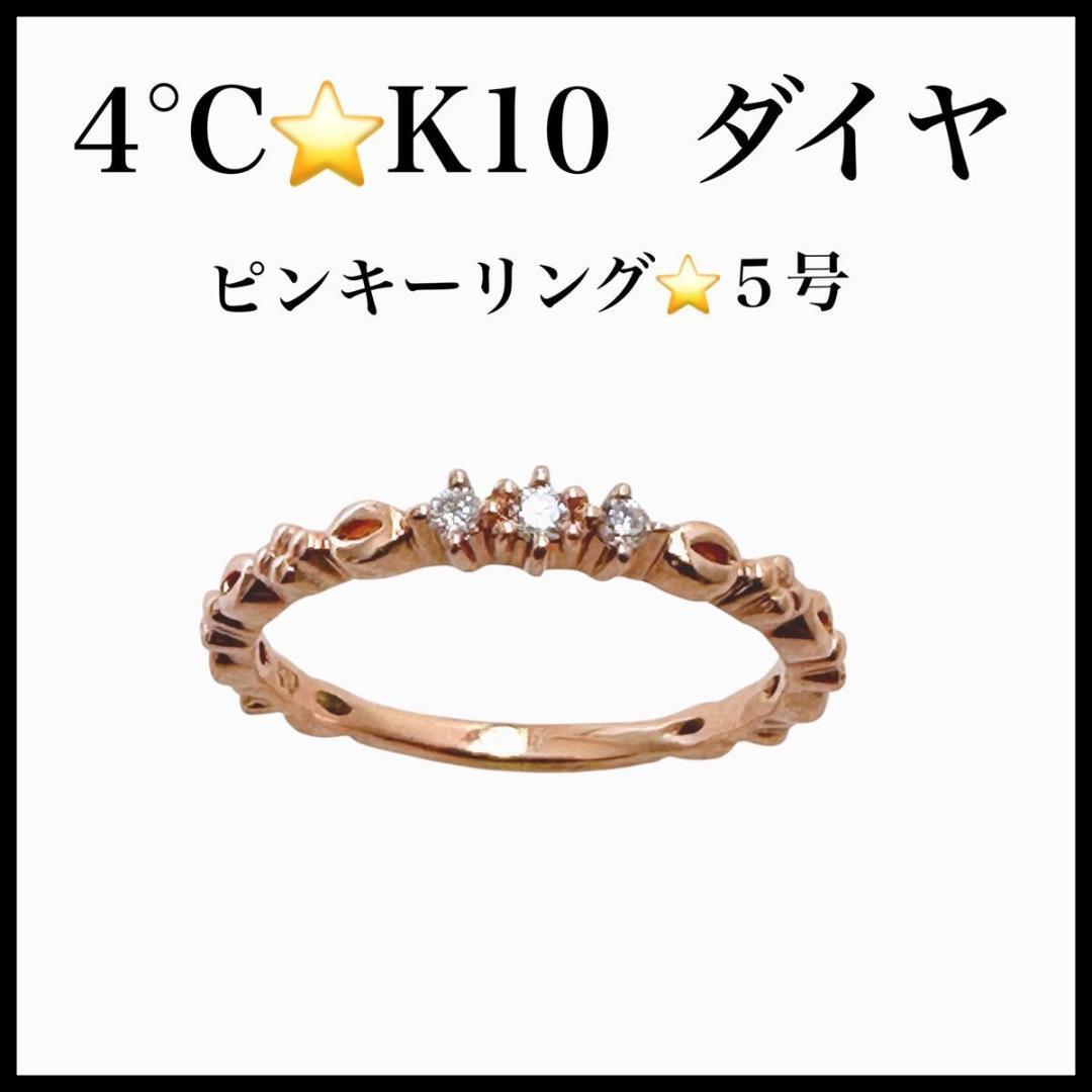 大人気ブランド4°Cのピンキーリングです(^^)中央に3粒のタイヤが輝き、サイドのデザインもとても可愛いです!可愛らしいピンクゴールドで、日本人の肌を美しく見せてくれます。状態が良く綺麗なお品ですが、新品未使用品ではないためお安く出品させていただきます。