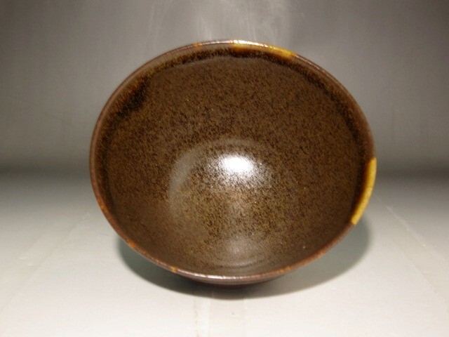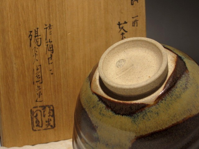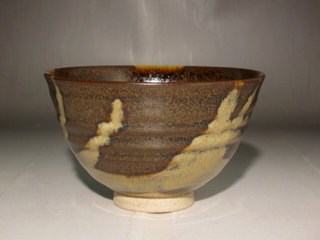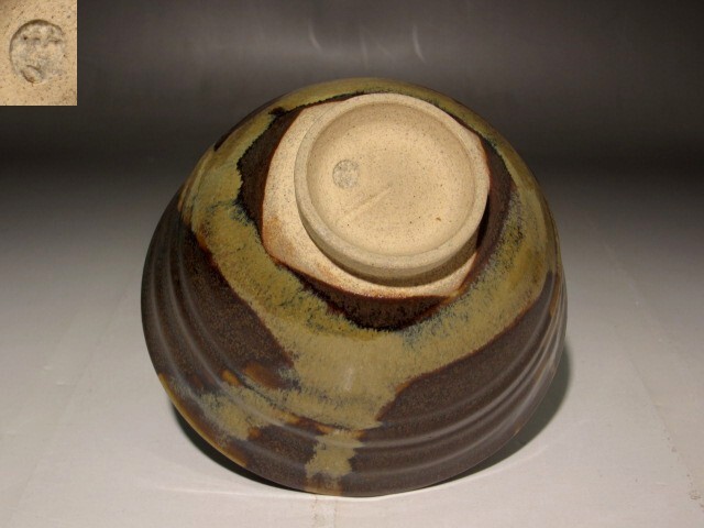 膳所焼 茶碗 「末廣」です。 味わい深い景色の見事な作品です。 底面に銘があります。