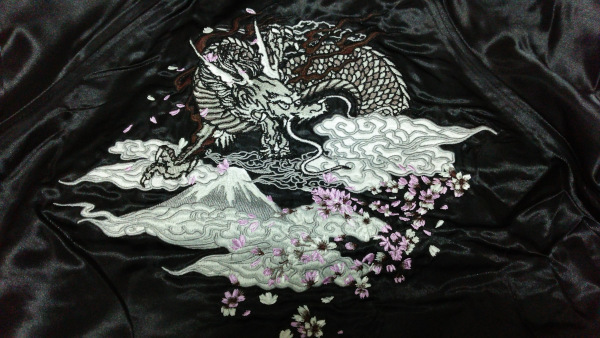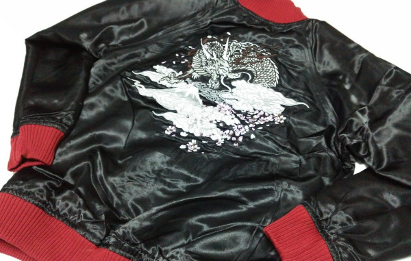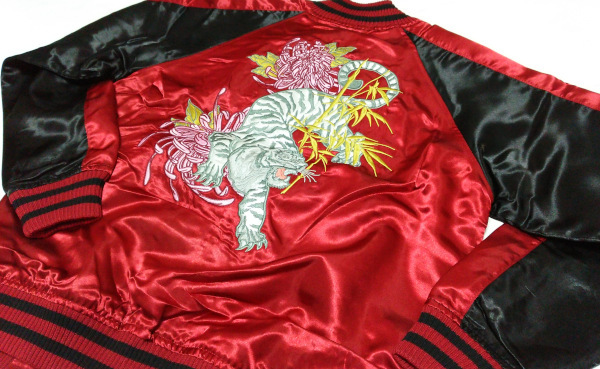 是空★虎x龍刺繍★リバーシブル★和柄スカジャン/レッド・L【新品】
