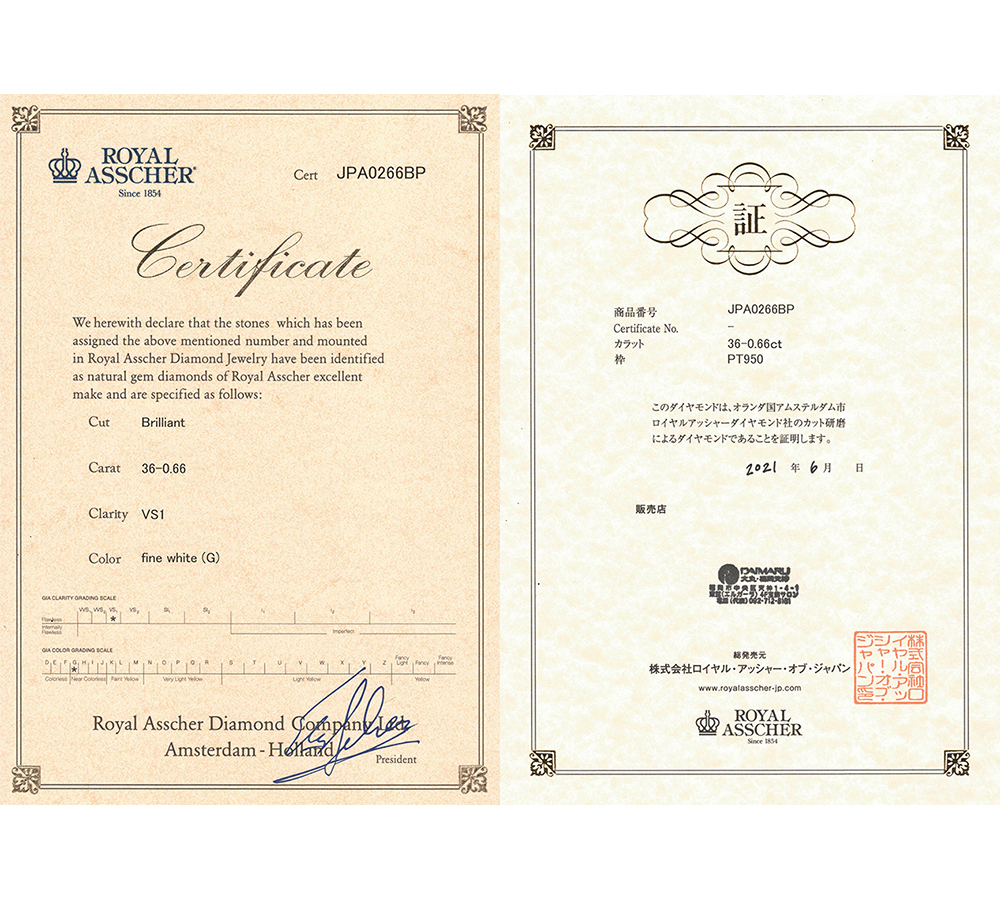 品質コメント:※ダイヤモンドのグレードは保証書に記載されているものを掲載しております。
