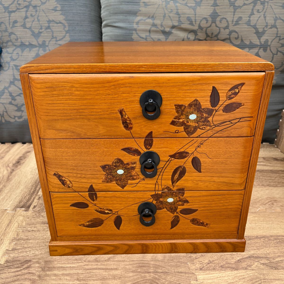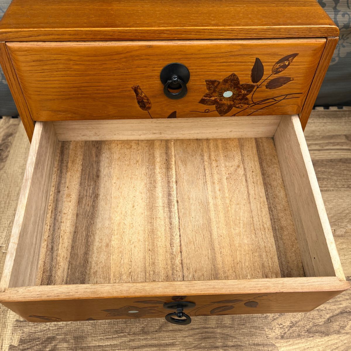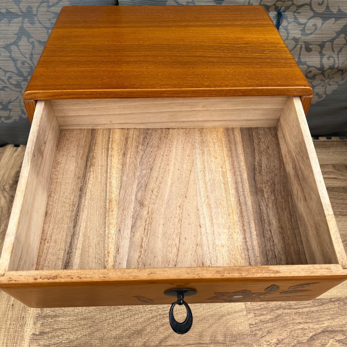 【中古】 小物入れ 木製 収納 引き出し 桜革細工