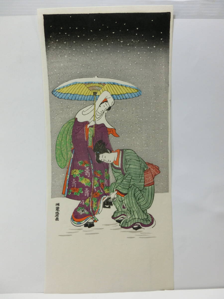 ●1枚は磯田湖龍斎の画ですが、 もう一枚は名が無いのでハッキリ分かりません。 ●サイズ:約17×36.5cm 17.5×38cm ★多少汚れ、端痛み、擦る時の線、等あります。 ※箱に軽く丸めて梱包します。 ※当方専門家ではなく知識がありません。 また木版画と言う下絵・彫り・摺りと分業によって製作される性質の為、真作保証は致しておりません。 ただこちらのものは印刷されたものではなく手刷りされたものには間違いございません。 ※※ノークレーム・ノーリターンでお願いします。※※ ★他、気が付いていない事があるかもしれません。 ご了承下さい。 ※画像を参考にして下さい。 ●外観チェックはしておりますが、細部までチェックができてない場合もあります。 ★状態は画像でご判断下さい。神経質な方、極端に程度にこだわる方は入札をお控えください。 ●取り置き(1週間)同梱大歓迎です♪ ●個人で保管していた物なので神経質な方の入札はお控えください。 ※写真に写っていない傷や汚れ等あるかもしれませんが、ノークレーム・ノーリターンでお願いします。 |