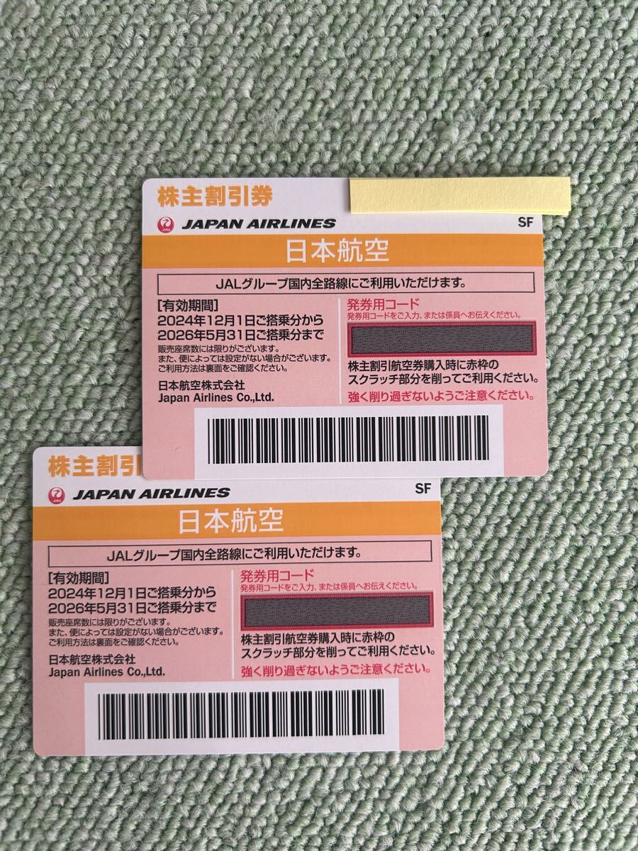 ★匿名配送料無料★日本航空JAL株主優待券2枚★2026年5月31日まで★