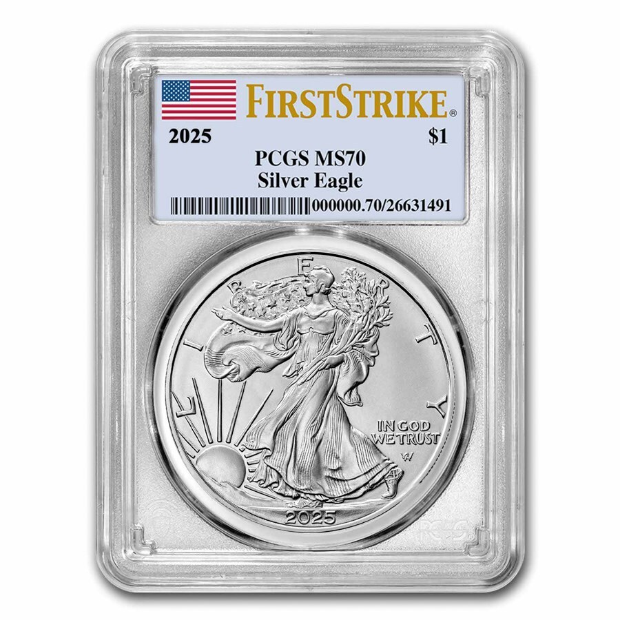 [保証書・スラブ付き] 2025年 (新品) アメリカ「イーグル・ウオーキング リバティ」純銀 1オンス 銀貨 PCGS MS70 (ファーストストライク)