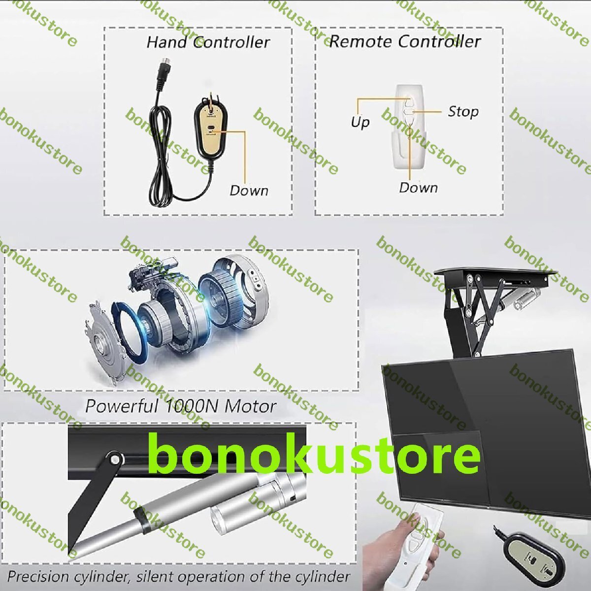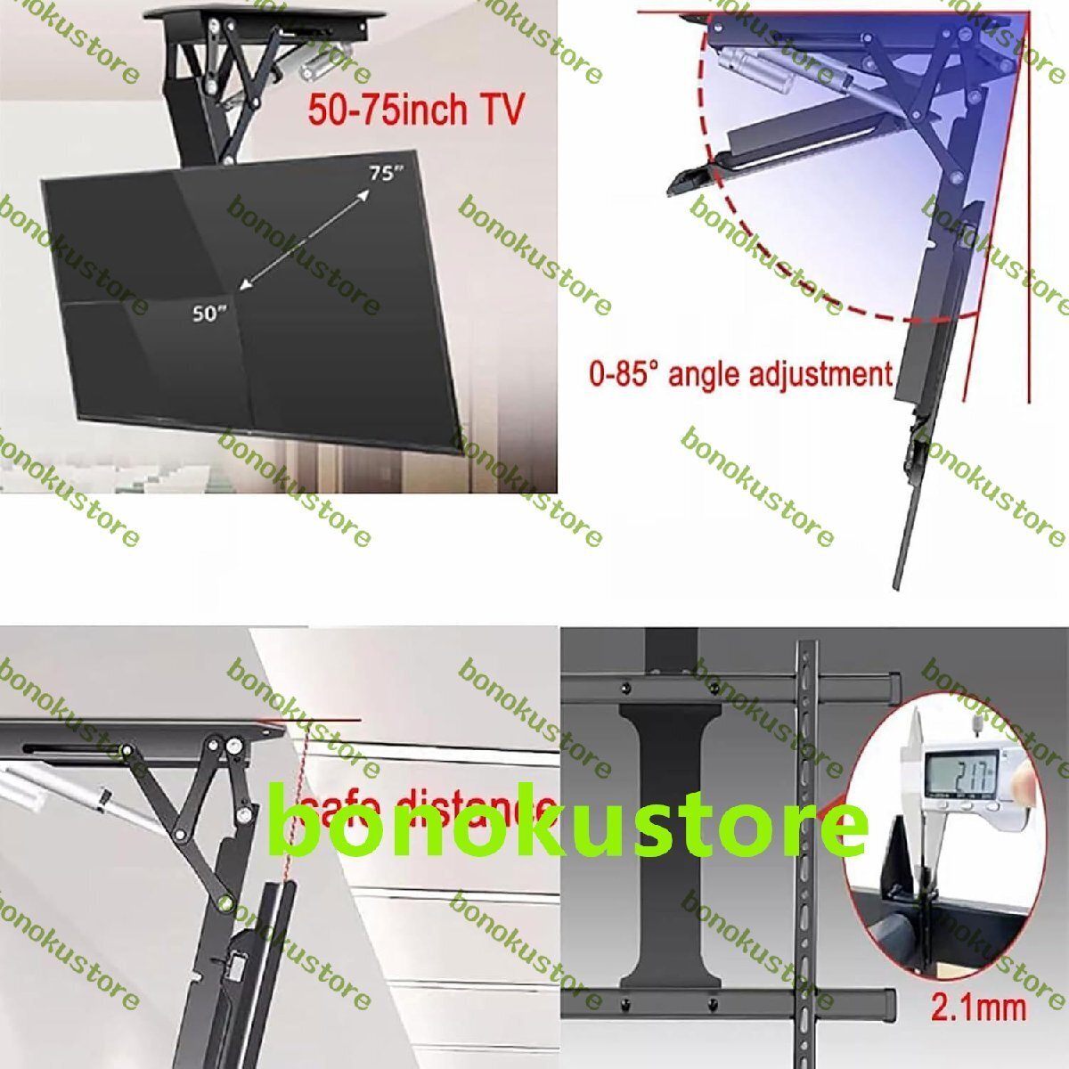 50インチ - 70インチ電動テレビ天井マウント、リモコン付き電動テレビブラケット、0?85°角度調整、最大耐荷重80kg、家庭、オフィス、会議室、ホテル用