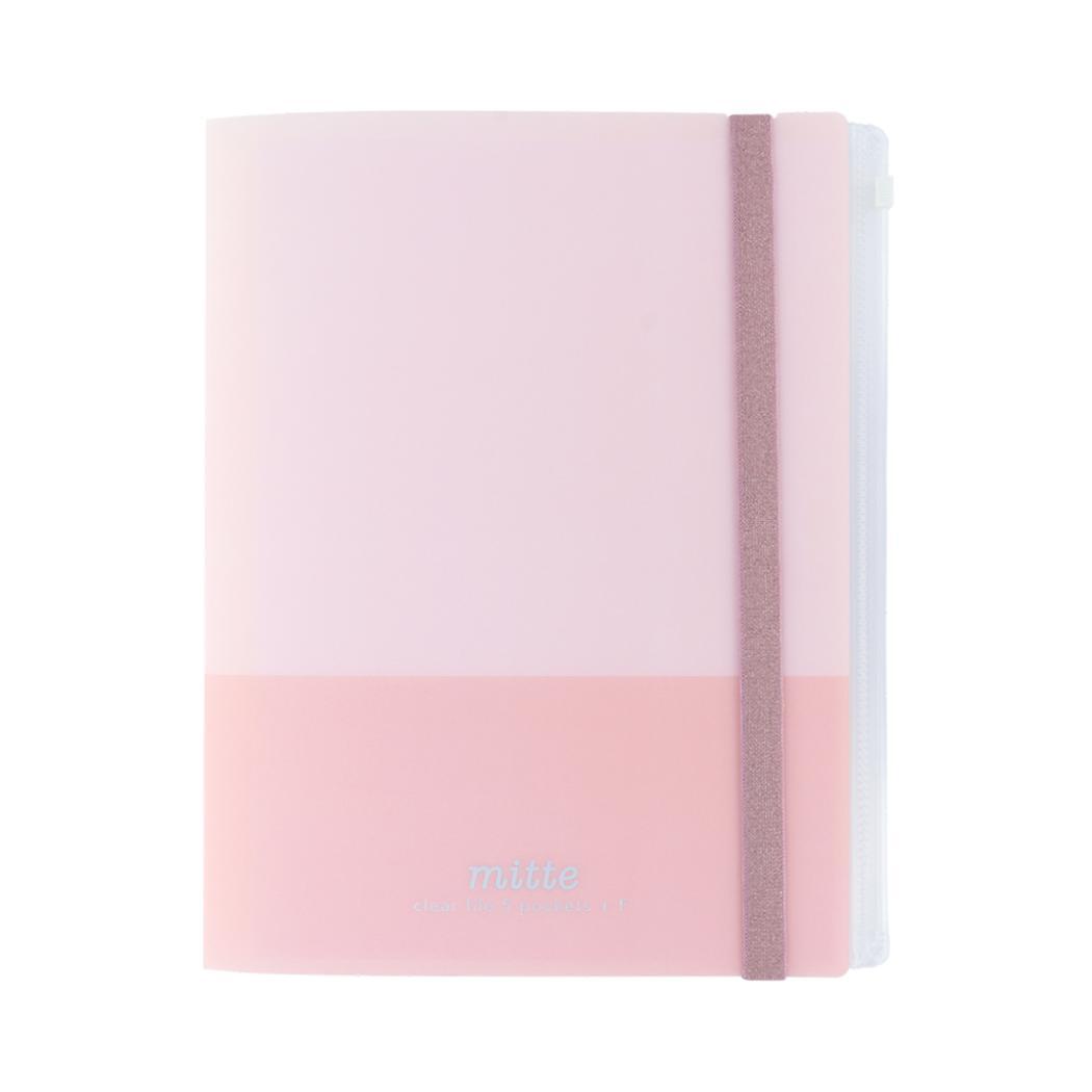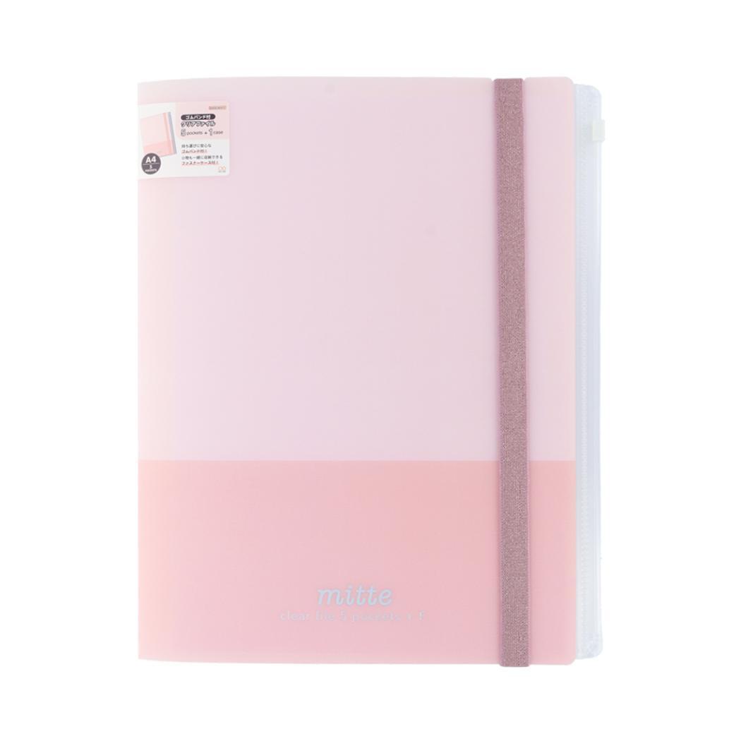 魅せるがコンセプトのミッテシリーズ 同じカラーでそろえてかわいい「魅せる」がコンセプトの[mitte/ミッテ]ステーショナリーシリーズこちらはかわいい[ゴムバンド付クリアファイル5P+F]ゴムバンド付で中身が落ちにくい!見開きタイプの5ポケット+ファスナーケース付き同シリーズの文具いろいろあるのでお気に入りを揃えてくださいサイズ:約250x312x4mm