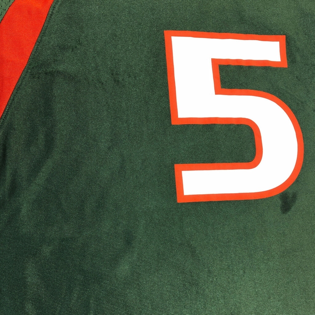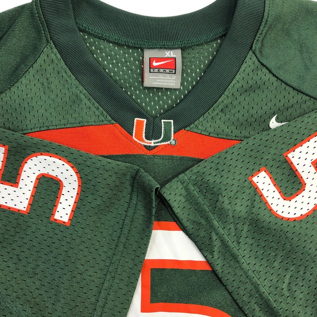 | [商品管理番号] T7084 [ブランド] NIKE/ナイキ [サイズ] XL [実寸サイズ] 肩幅:約65cm 着丈:約76cm 身幅:約67cm 袖丈:約31cm [主な素材] 表地 : ポリエステル [色] グリーン [仕様] スポーツ、アメフト [状態] キズ:胸、腹部 | |||