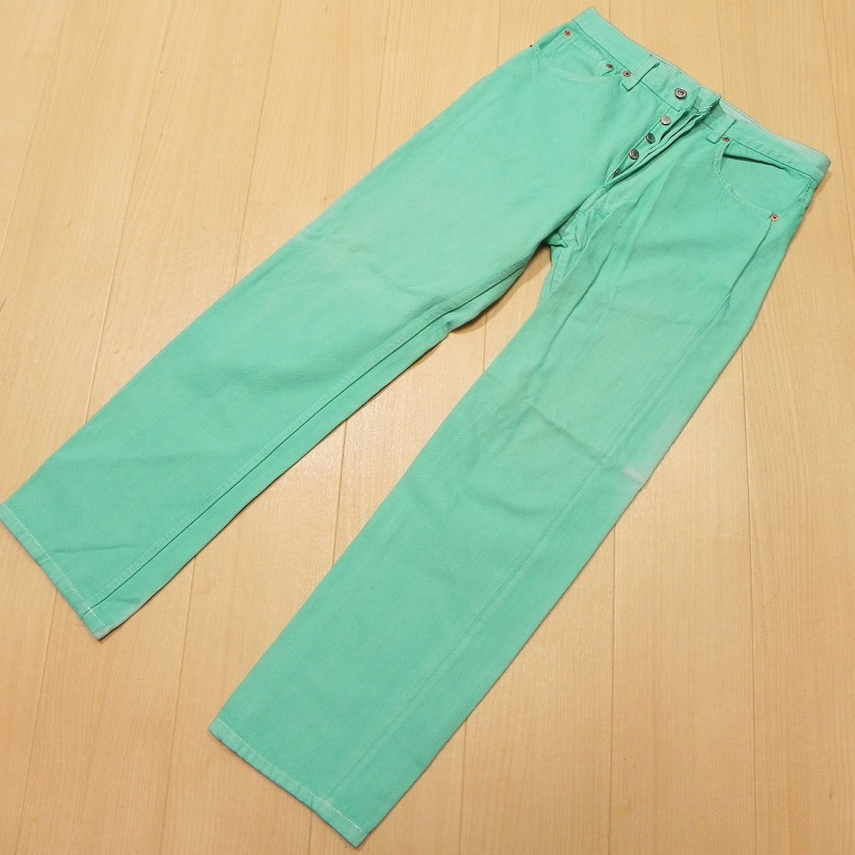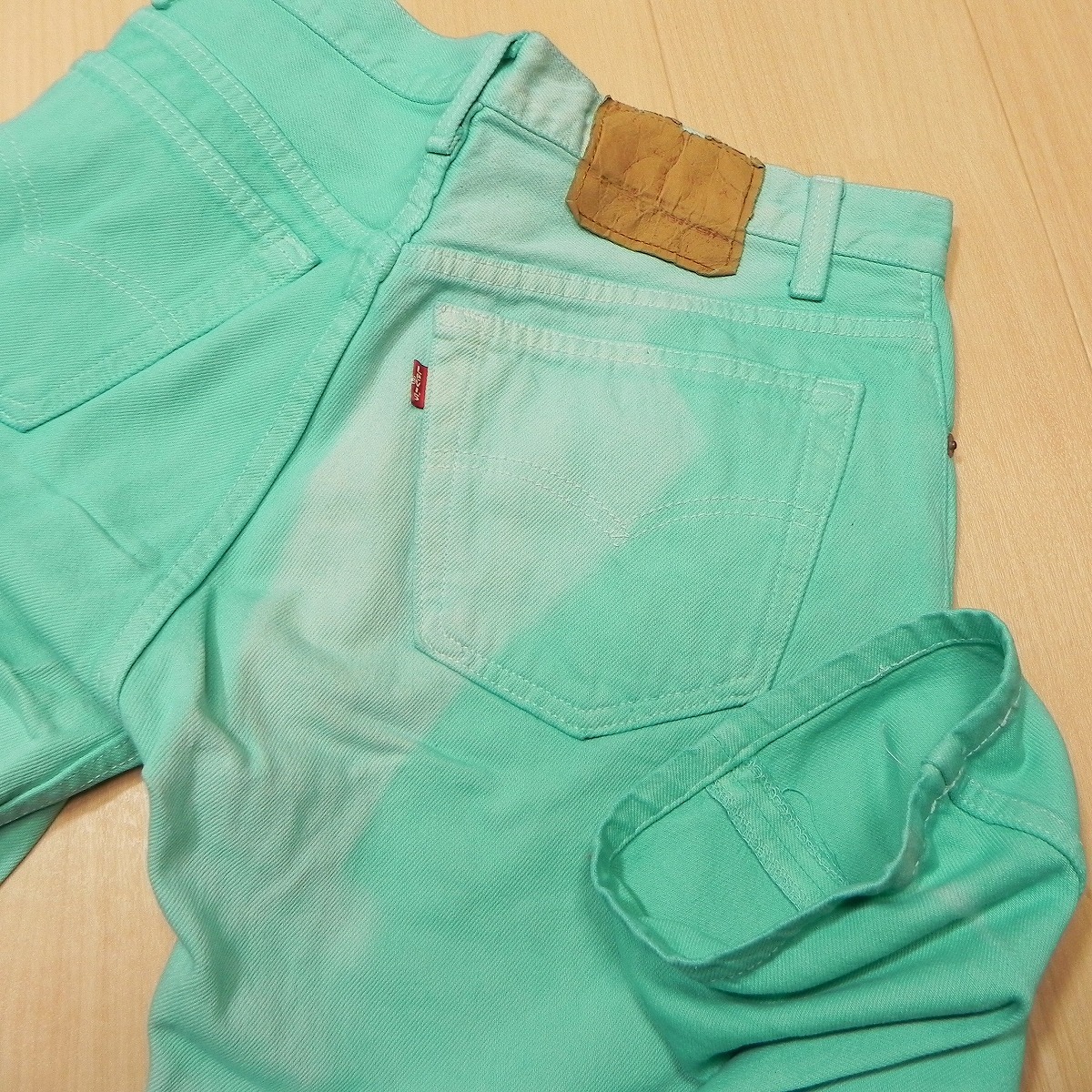 (310★ USA製 Levis 501 リーバイス 後染め カラー デニムパンツ ジーンズ 古着 w29 w30 ターコイズ系 古着 ボタン裏552 即決 ★
