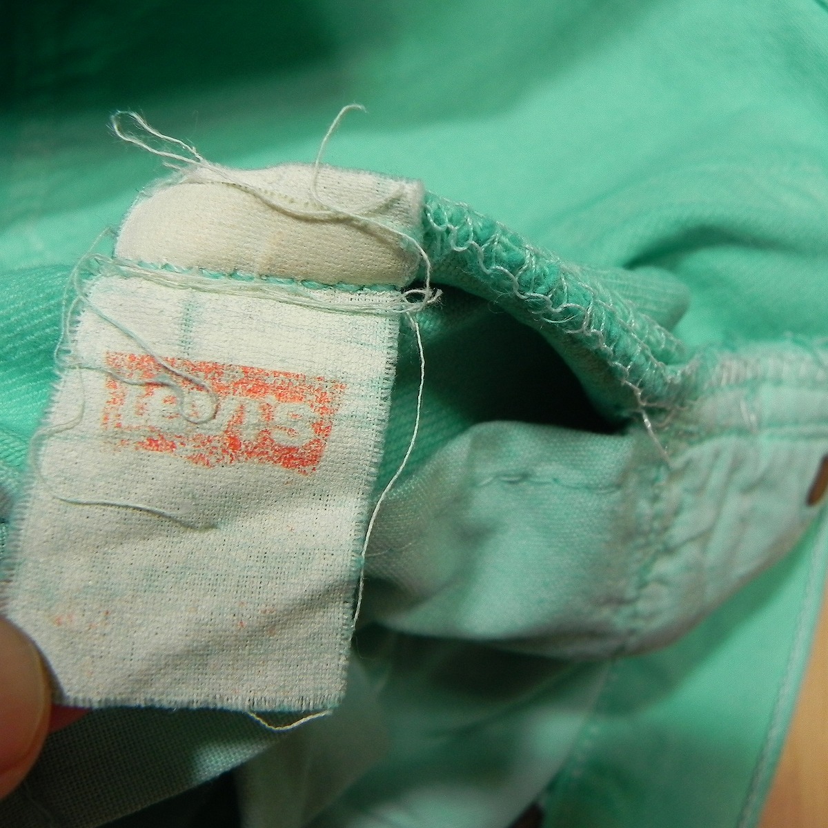●あくまでも古着のため、ノークレームノーリターンでお願いいたします。使用感はございますが、穴などのダメージはございません。ボタン裏552です。ターコイズっぽい色合いですが、写真のように色ムラがございます。 裾はシングルステッチで裾上げされております。