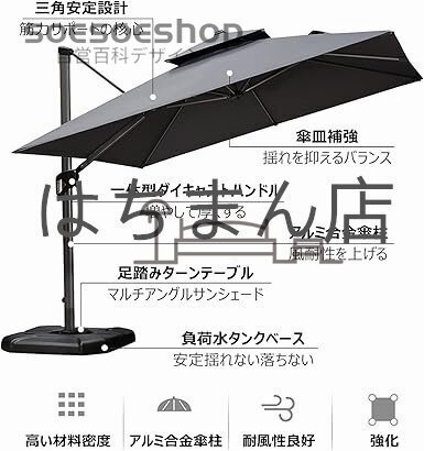 ★【注意事項】:傘と台座は2個入りです。 風の強い天候では、傘を片付けて寿命を延ばしてください。 アフターサービス:初期不良の場合は、お気軽にご連絡ください。 ご心配なく、すぐに対応いたします。店舗をご確認ください:はちまん店、他の同デザインは全て海賊版でございます、品質は保証されていません、慎重に購入してください。