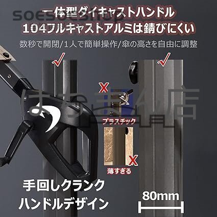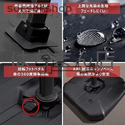 ★【ガーデンサンシェードの耐風性】:従来のガーデンサンシェードと比較して、耐風性能が大幅に向上しています。 1.傘柱の直径は80mmで、通常の傘より50mm強度があります。安定性と安定性; 2.トップは8本のリブサポートで構成された三角形のデザインを採用し、安定性と耐風性を高めます; 3.ダブルトップデザインは通気性を促進し、強風の傘への影響を軽減します; 4. 145Lの水タンクが搭載されており、風を防ぎます動かない。