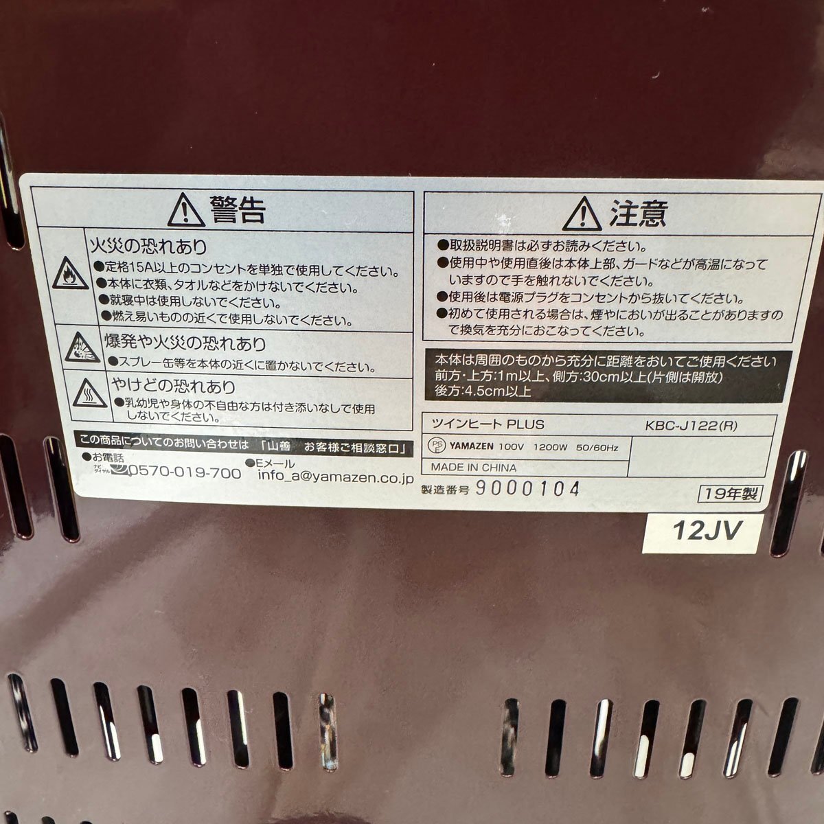 中古●山善 カーボンヒーター KBC-J122●ツインヒートPLUS 2019年製 遠赤外線 電気ヒーター レッド 首振り機能付き ~1200W 札幌