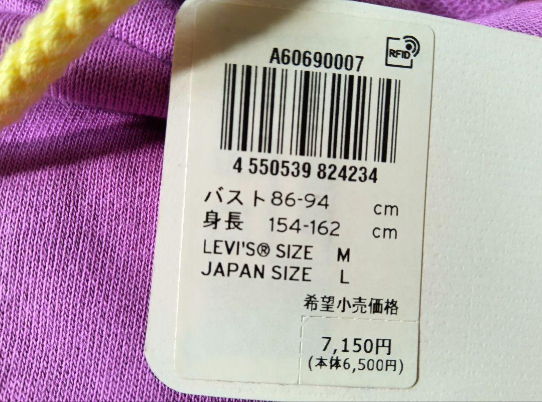 日本サイズ L バスト86cm~94cm 身長154cm~162cm 着丈62cm 袖丈52cm 綿60% ポリエステル40%