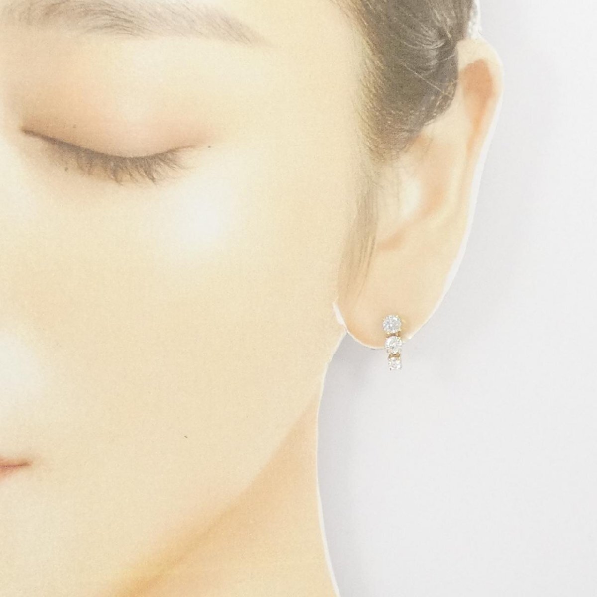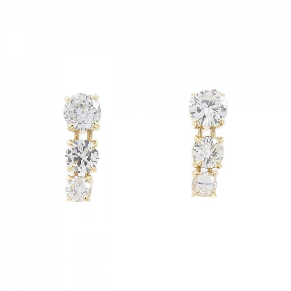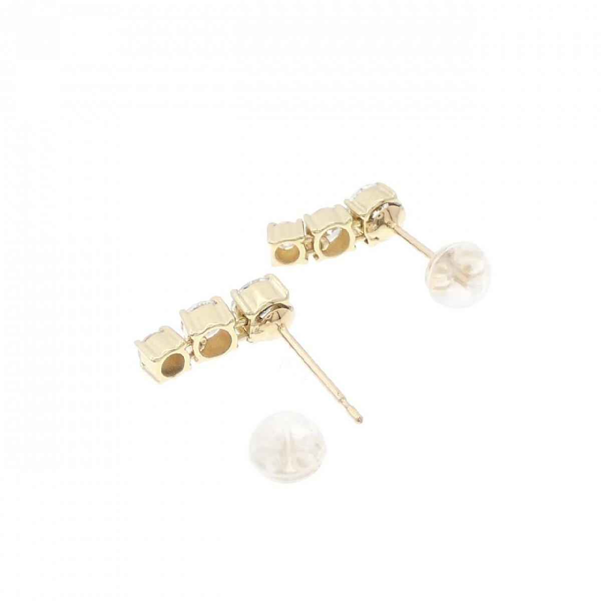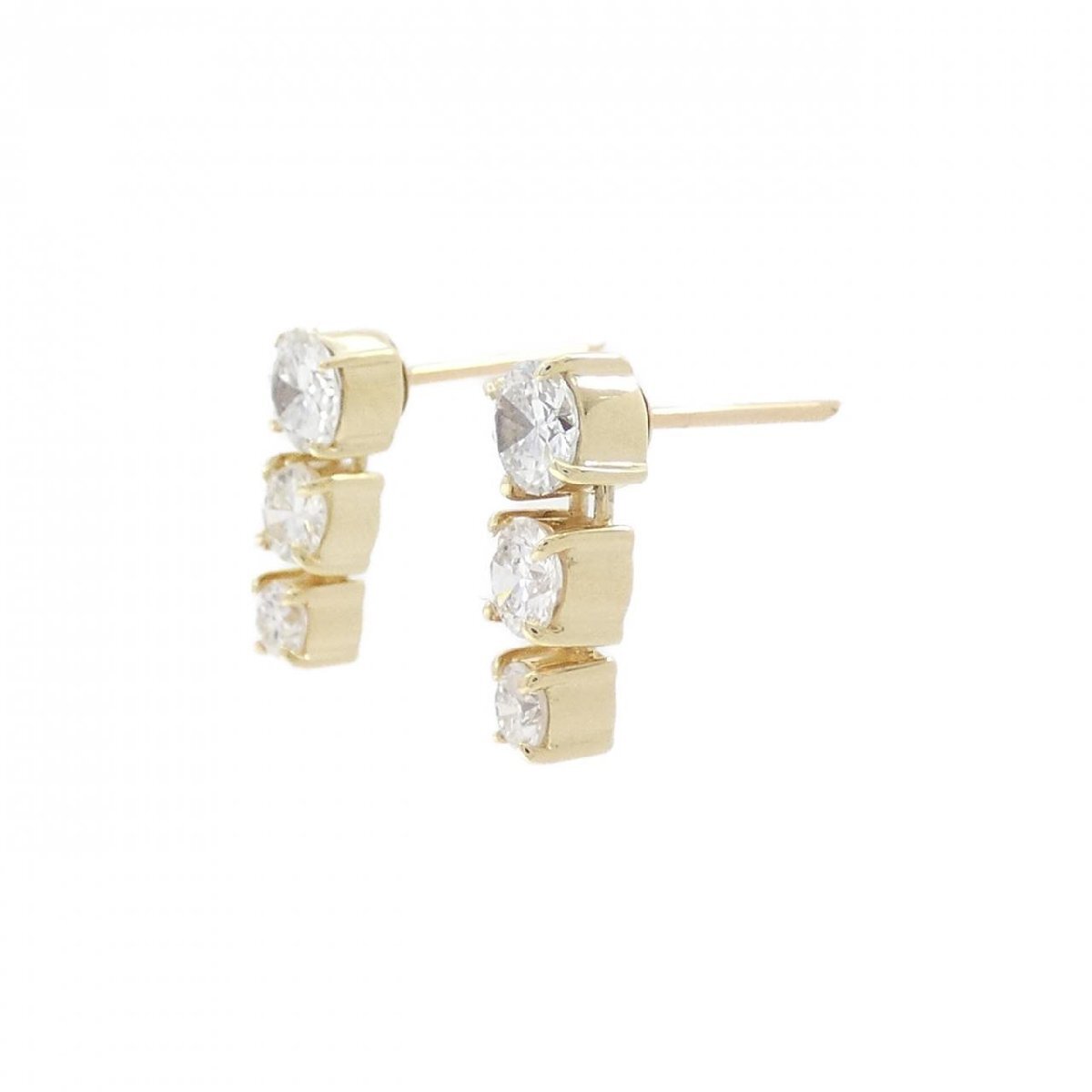 照りの良いダイヤモンドが3石並んだピアス。イエローゴールドが明るい印象に仕上げてくれます。