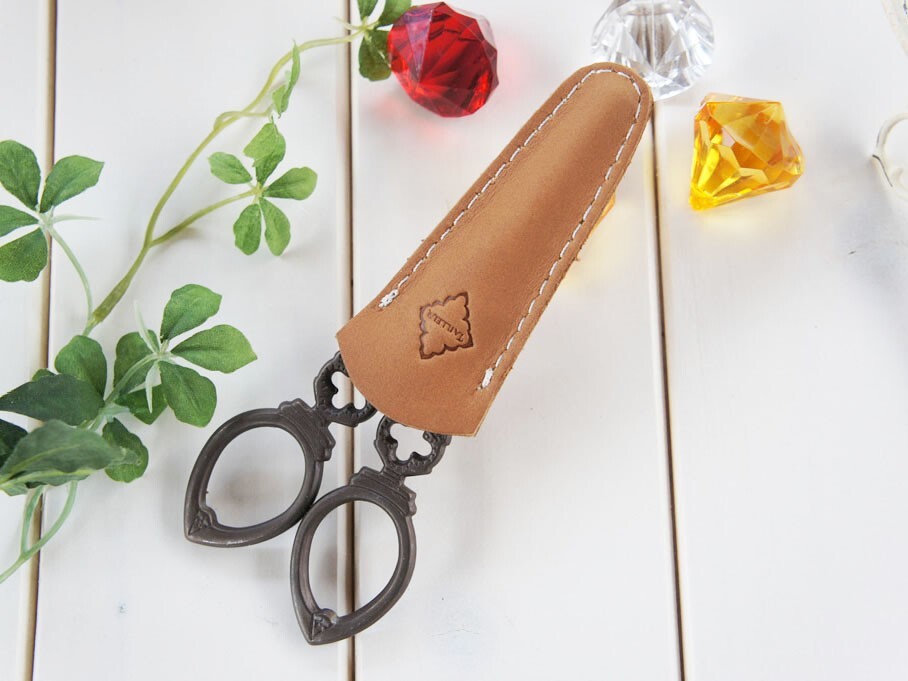 キャメルケース付◇デザインシザー◇アンティーク調レザー