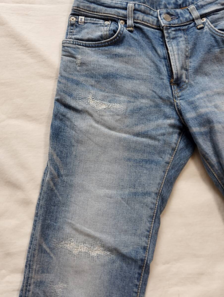 商品説明 | ブランド EDWIN ダメージ加工ED03ジーンズ 状態:USED(使用感ありますが状態いいです) JAPAN製 サイズ表記W28 ウエスト74cm、股下83cm、股上(前27.5cm、後31cm)、腿幅(股から10cmの位置で)24.5cm、裾幅18.5cm ★あくまで古着であることをご了承ください。 そのため程度の感じ方は個人によって違いがあります。 古着に慣れていない方、神経質な方はご遠慮ください。 |