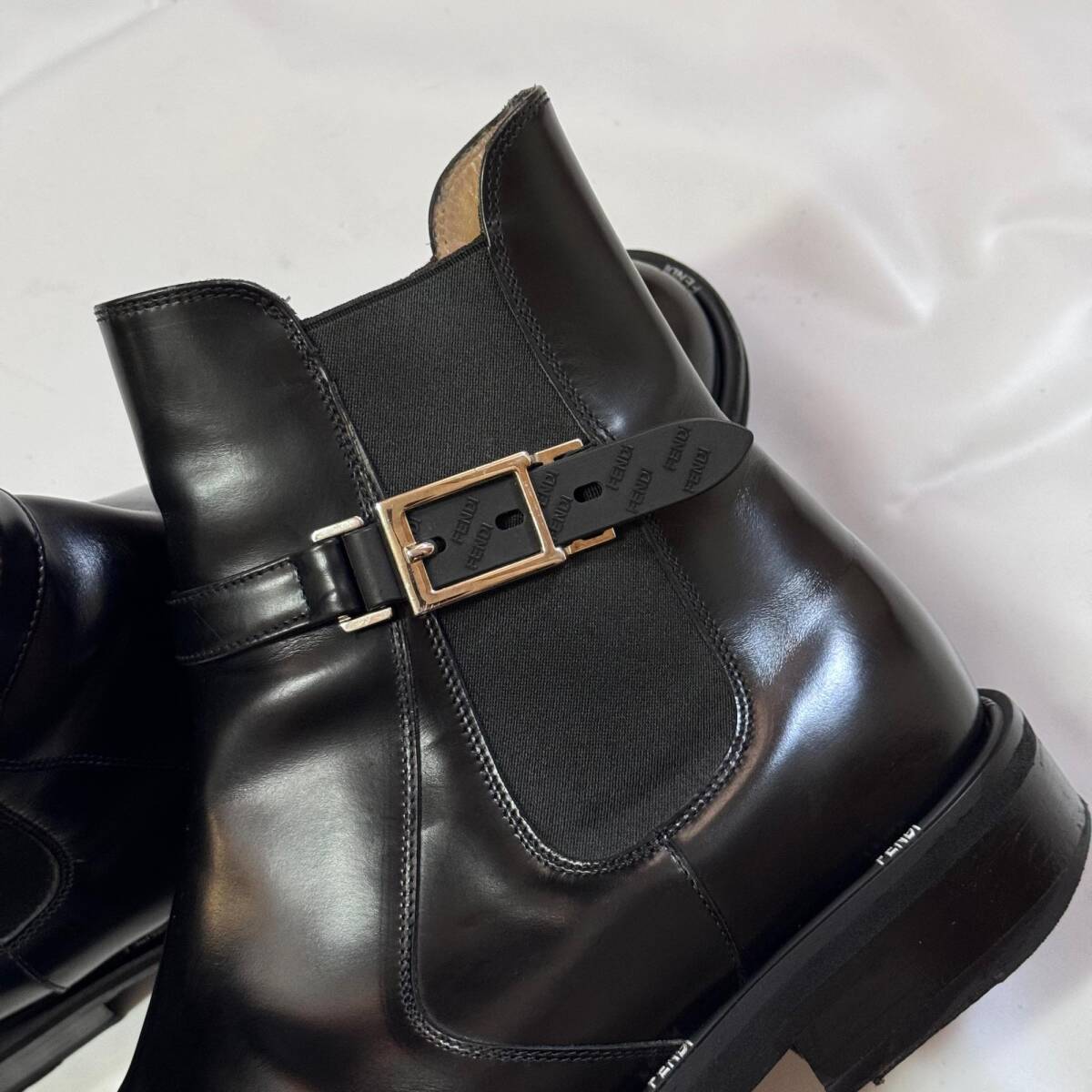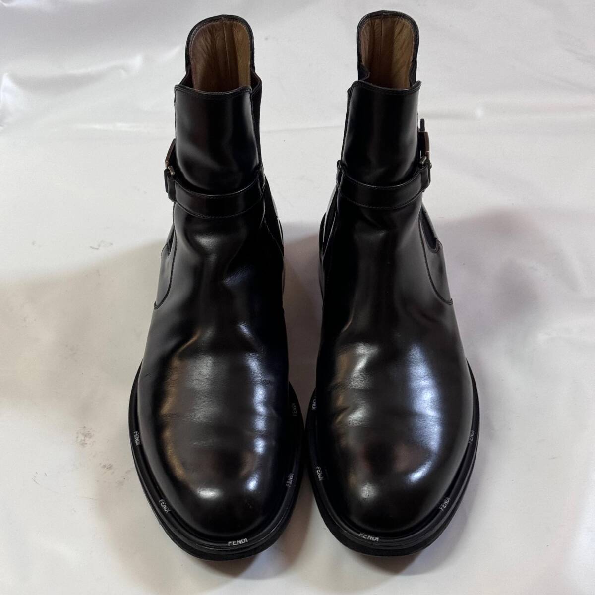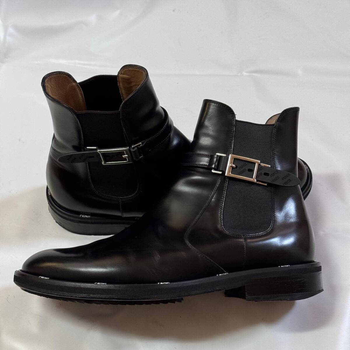 FENDI フェンディ サイドゴアレザーブーツ 7(26cm) ロゴウェルトレザーシューズ メンズ 革靴 男性用 ブラック 黒 ストラップシューズ