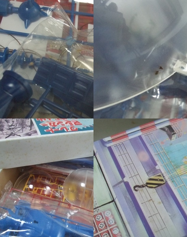 組み立て説明書や箱の梱包材、ビニール袋によごれやシミがあります。