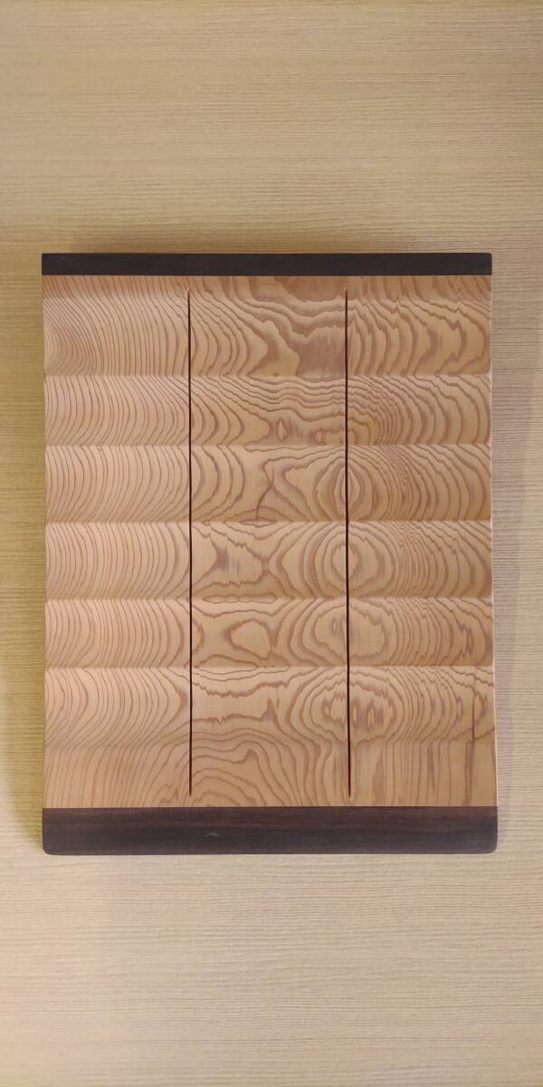 ☆おもしろ★駒板 ★スリット入り★ 裏側の抵抗少なくしなり、重さも軽い★立体的☆駒板 363×272×20(mm) ※スリットのミゾ先に自然とワレが入る場合があります |