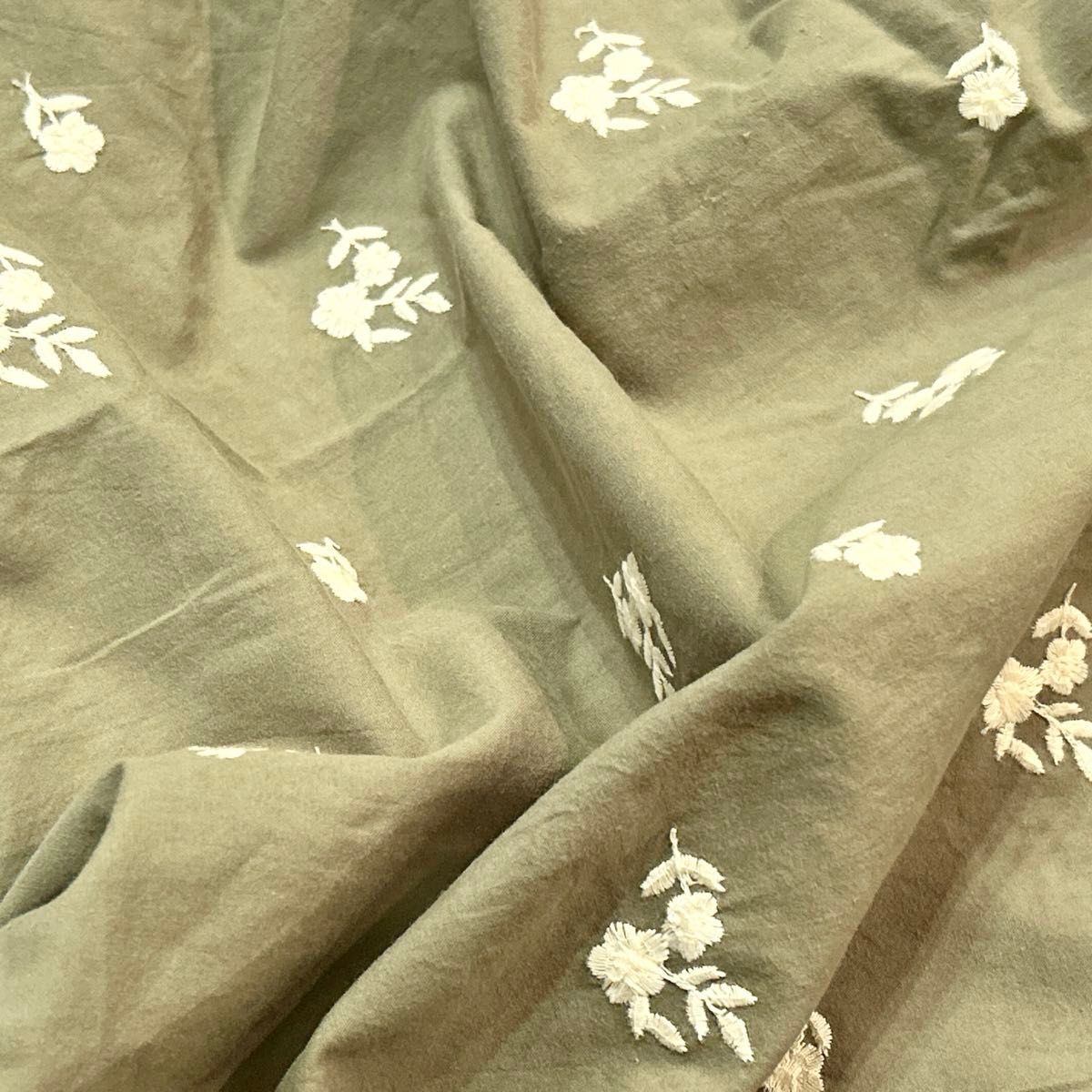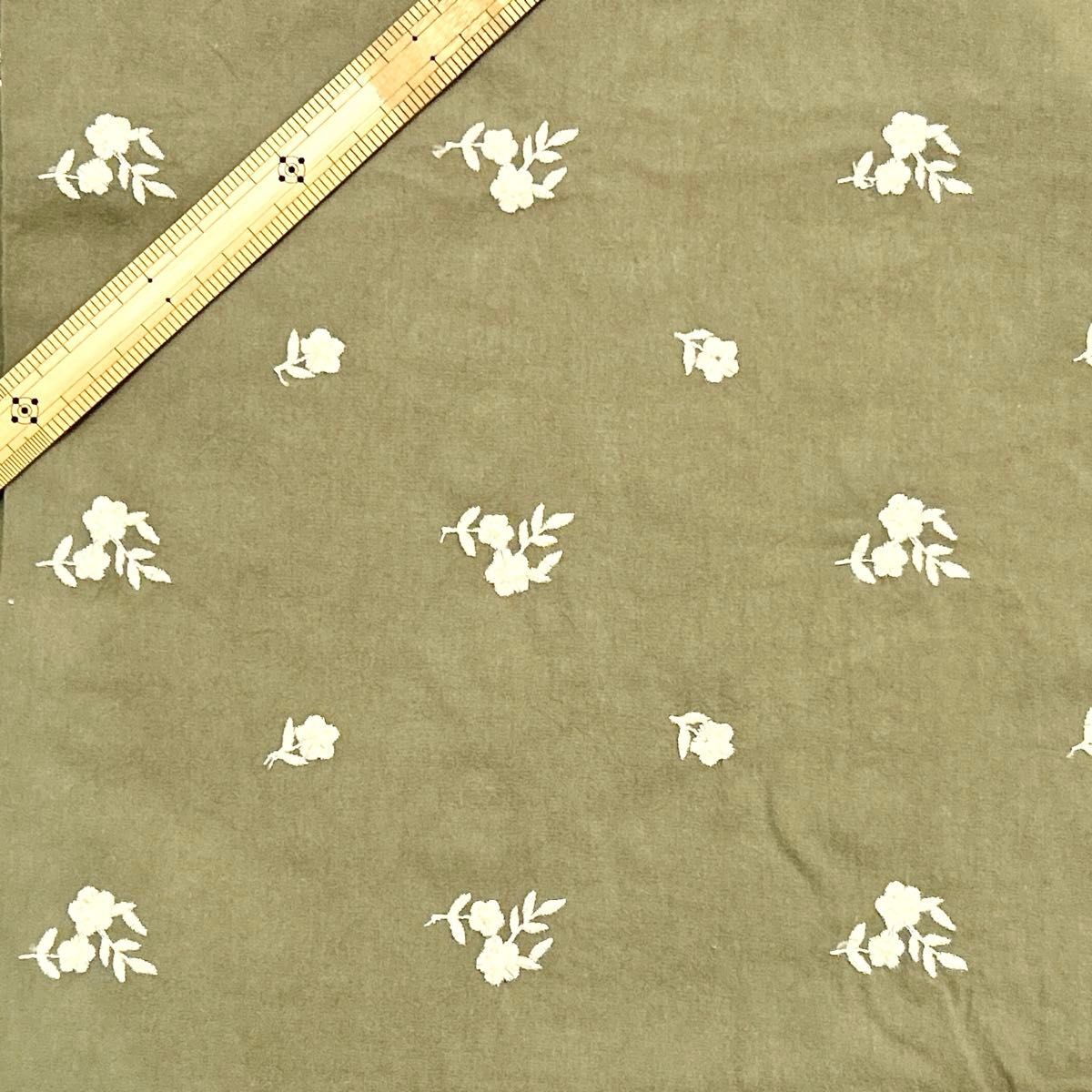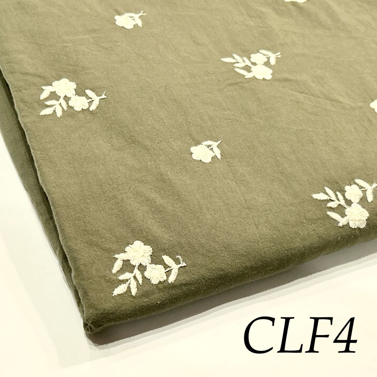CLF4 刺繍 コットンリネン 幅135cm×50cm カーキ 小花柄