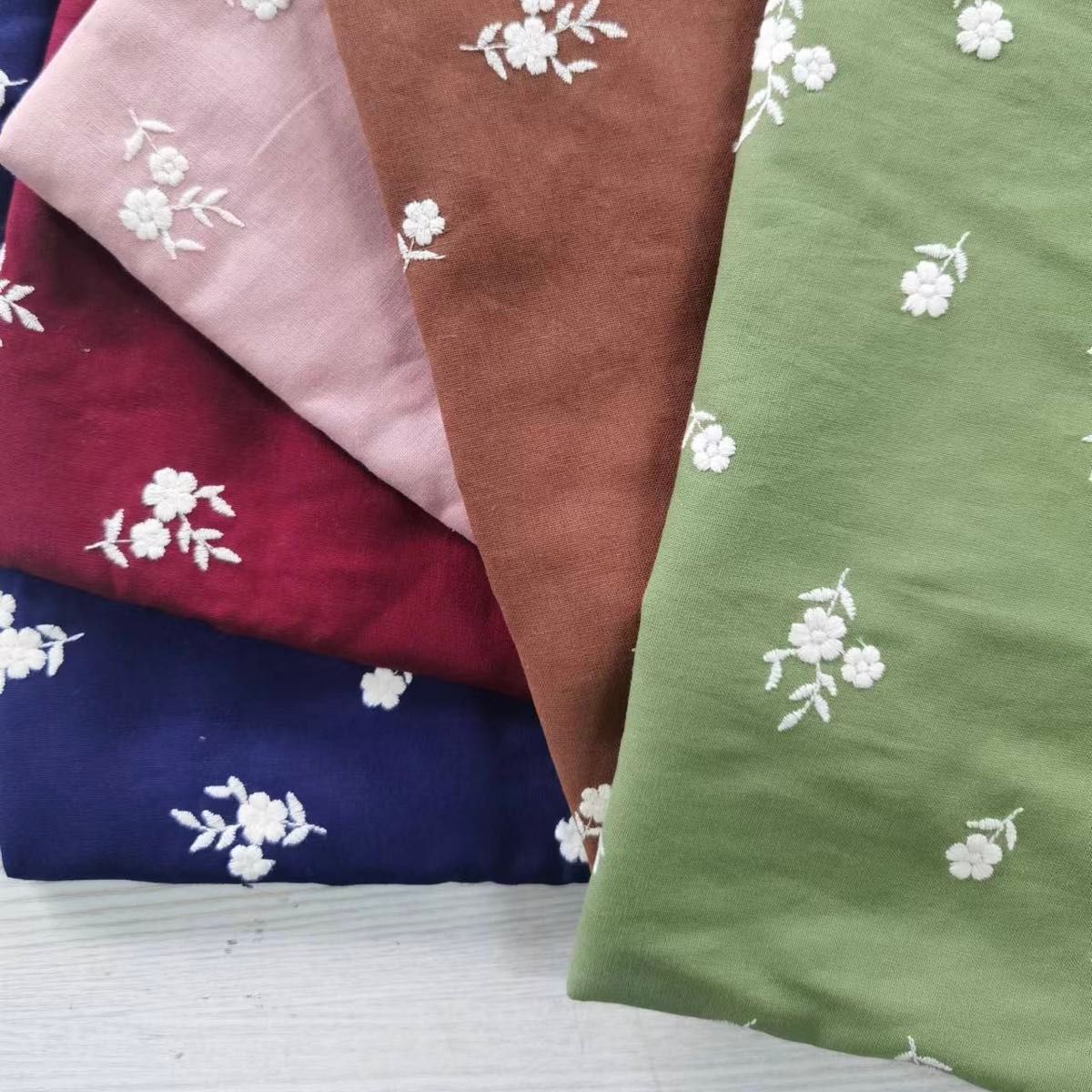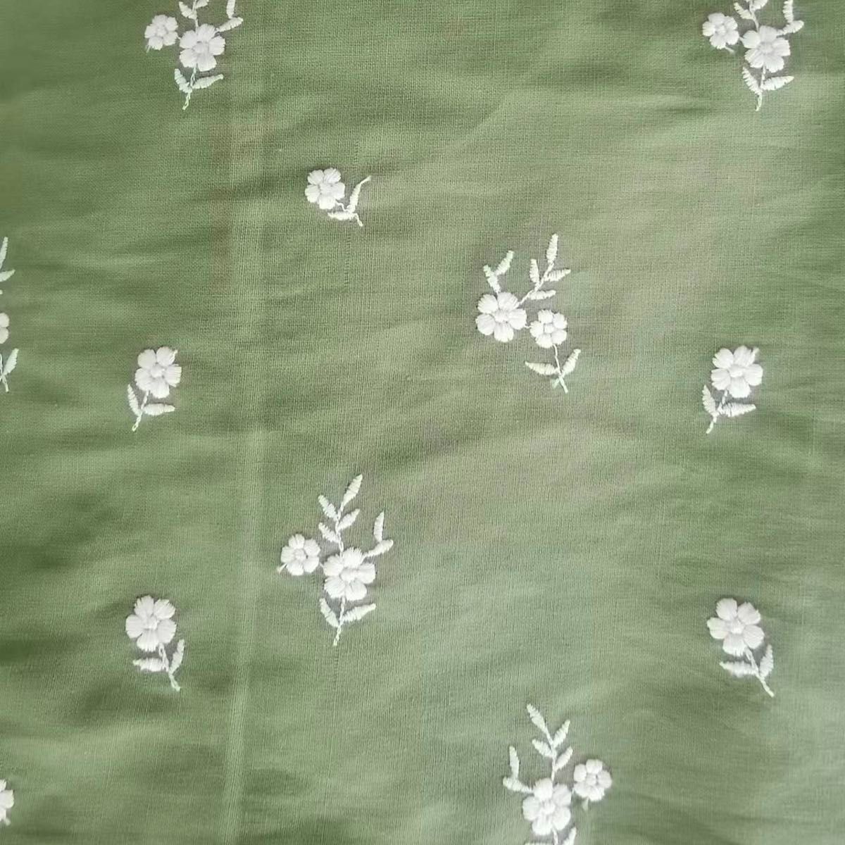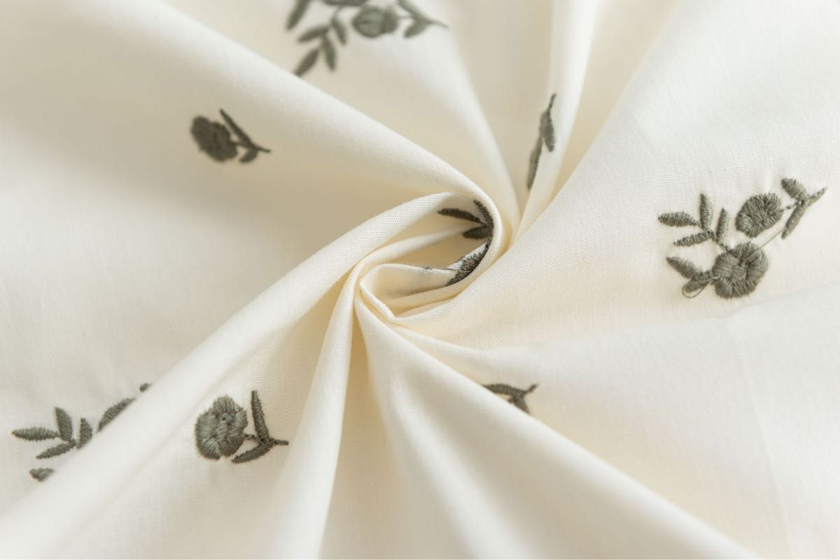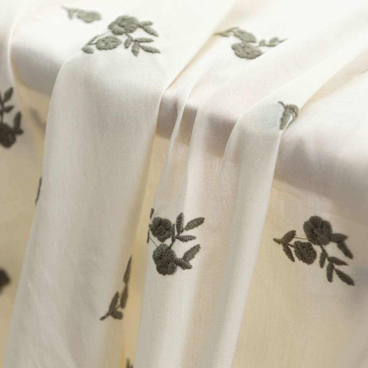 小花柄の刺繍が施されている コットンリネン生地です☆