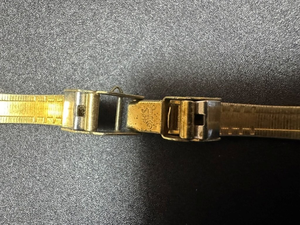 | 【商 品 説 明】 | 汎用の時計バンドです。 古い時計の部品なので実存するだけでも貴重では御座いますが「使える・使えない」の判断は写真を閲覧頂き、御自身で御判断下さい。 「何々の時計に使えますか?」等の質問にはお答え致しかねます。 状態に尽きましては写真にて御確認頂けます様御願い致します。 中古時計から取り外された部品になりますので写真では御確認頂けない不具合等もあるかとは推測されますが原則ジャンク扱いにて御考慮下さい。 上記の通り、原則瑕疵担保責任はお受け致しませんので御了承下さいます様御願い致します。 写真掲載数の手前、写真では確認出来ない瑕疵が有る事もありますし全ての検品は出来ていない商品になりますので御注意下さい。 一般的な中古扱いの商品になりますので当時の新品同様なクオリティを求められる方や極端に神経質な方にはお勧め致しません。 中古部品の性質上、原則として汚れ・色褪せ・加水分解・変色・傷・劣化・機能的な欠陥等々が有る前提でのジャンク扱い、補修ベースのノークレーム、ノーリターンでの認識にてご検討下さい。 瑕疵担保責任はお受け致しませんので御了承下さいます様、お願い致します。 店頭と併売になりますので御成約を頂きましても店頭で売れてしまっている事も御座いますので御了承下さいませ。 説明文を確認し慎重に購入を頂けます様宜しくお願い致します。 |