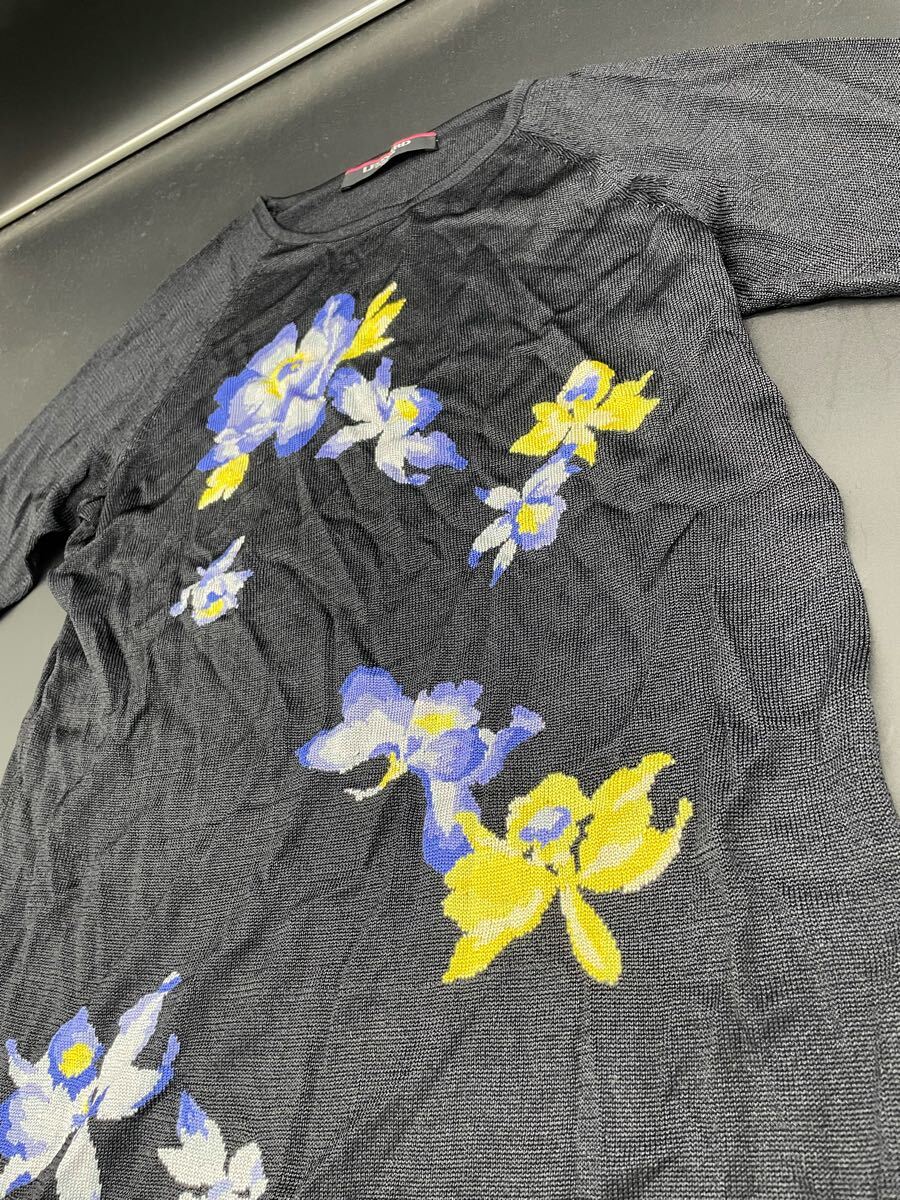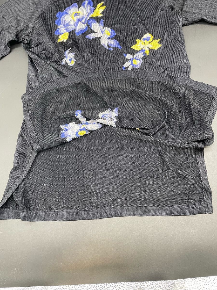 半袖 ニット ロング トップス 黒 ブラック 花柄 フラワー柄 サイズL