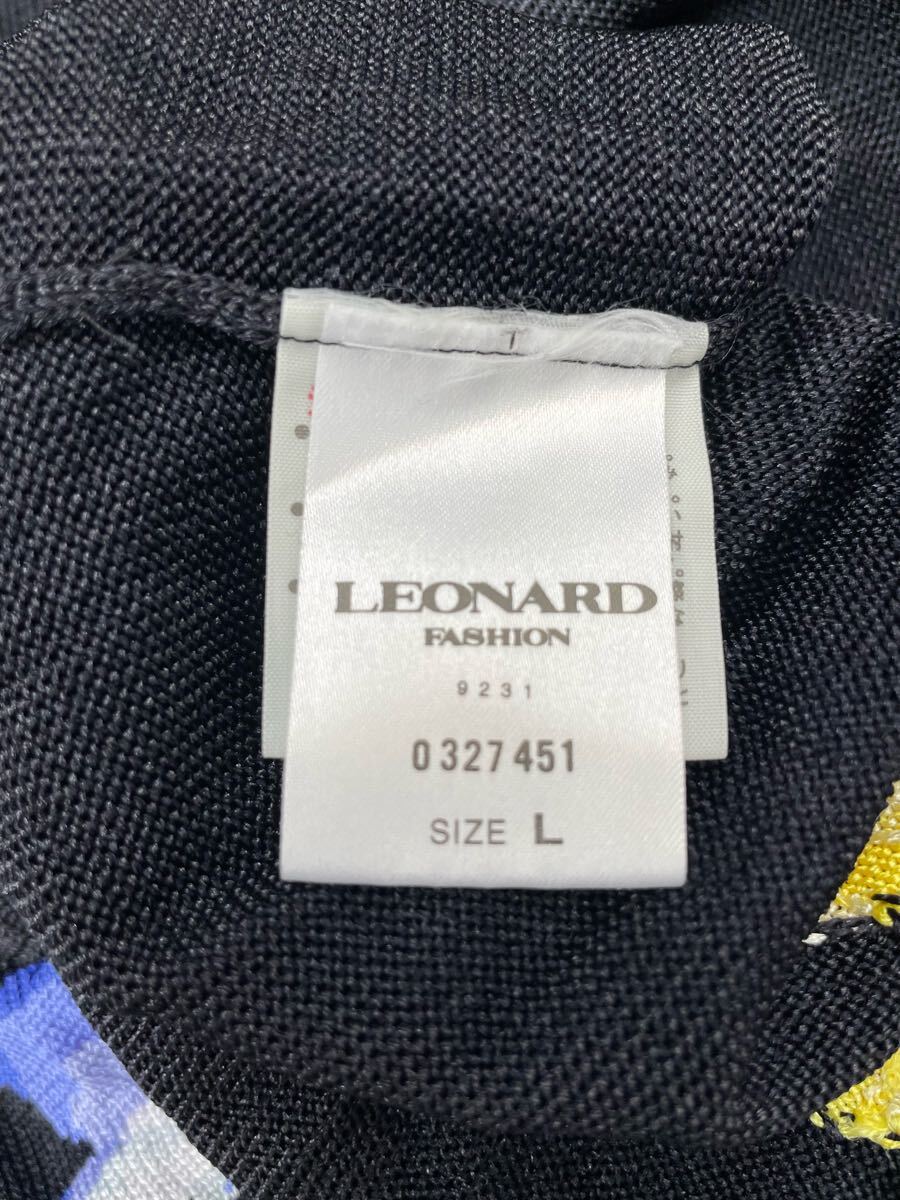 【美品】LEONARD FASHION(レオナール ファッション)半袖 ニット ロング トップス 黒・ブラック 花柄・フラワー サイズL
