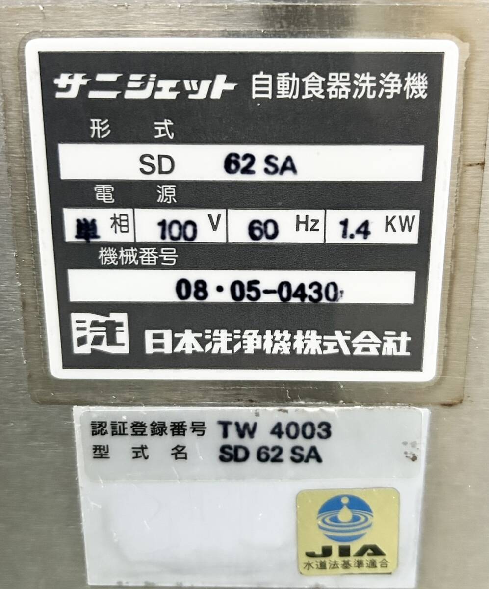 F105 食洗機 日本洗浄機 SD62SA 2008年式 ★★★