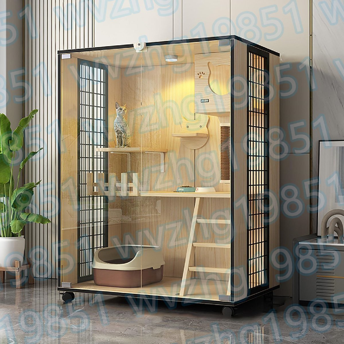 【 強化ガラスにより安全な視界が得られます】:猫用ケージは強化ガラスで設計されており、美しく透明であるだけでなく、猫にとって安全な視界を提供します。 ガラスの保護性能により、空間に明るさを加えながら、別荘にいる猫の安全を確保します。
