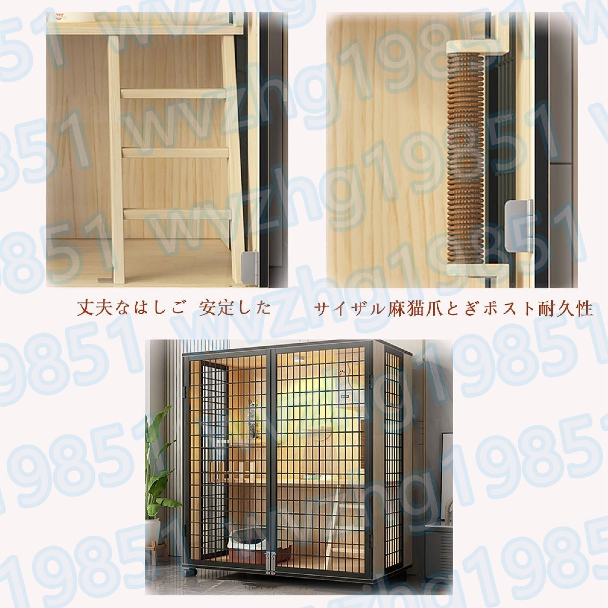 【耐久性があり、爪を傷つけないサイザル麻の猫の爪とぎポストが付属しています】:猫ケージ内にはサイザル麻の猫爪とぎポストがあり、猫にとって理想的な爪とぎ場所となっています。 サイザル麻は本来耐摩耗性があり、猫の自然な引っかき欲求を満たすだけでなく、長期間の使用によって爪が損傷しないように爪を保護します。