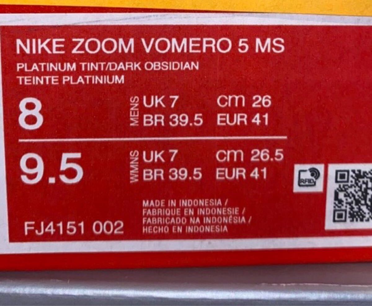 ナイキ ズーム ボメロ5 "プラチナムティント"(FJ4151-002)シルバー26cm箱無し