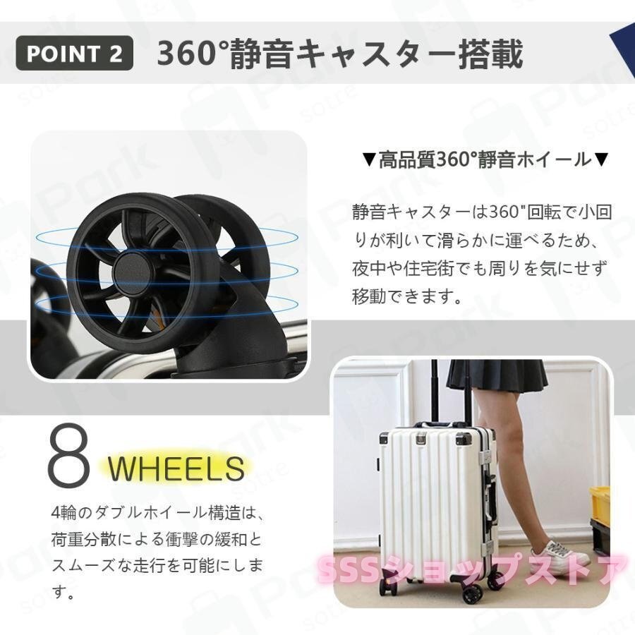 消音キャスターで早朝や夜間の持ち運びも安心です。ダブルキャスターは操作性のスムーズな360度回転8輪独立サインレントキャスターです。簡単にきゃりーできます。