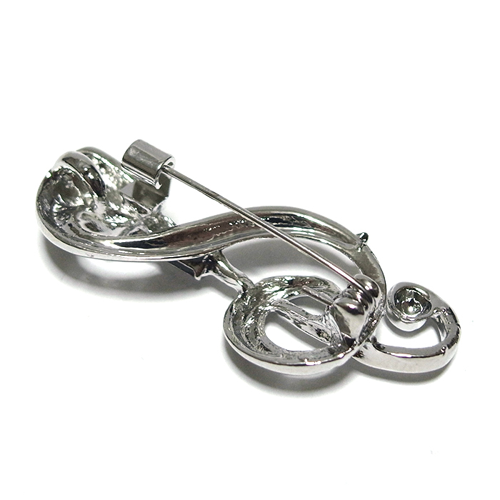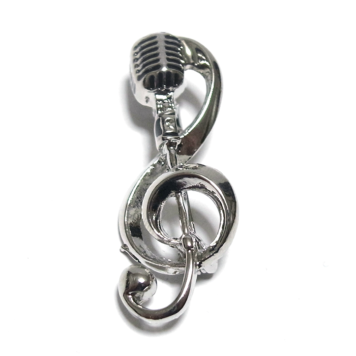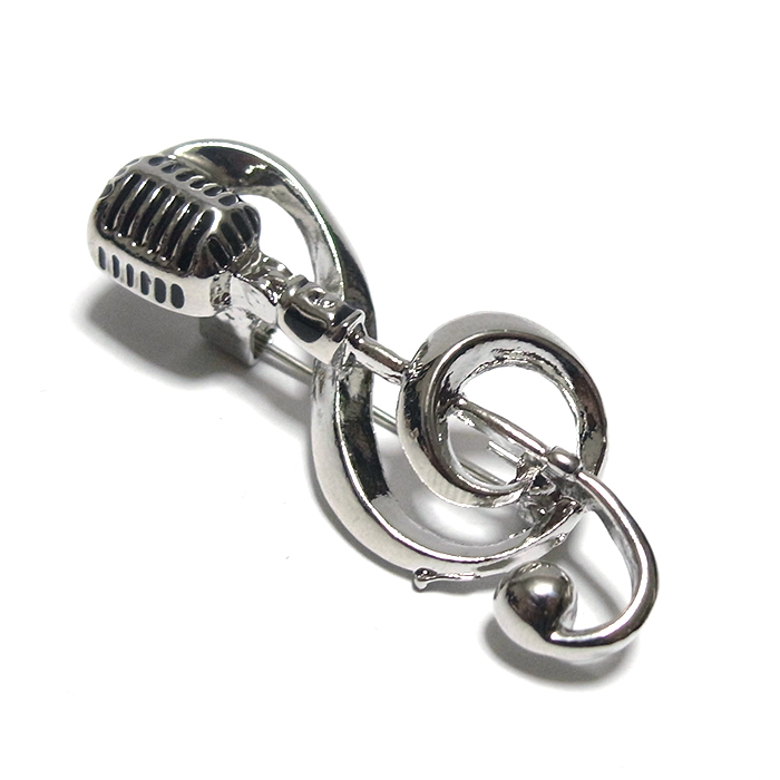 ラペルピン★ブローチ ト音記号 マイク 歌手 ボーカル 音楽 アンティーク・シルバー pin-1635-2