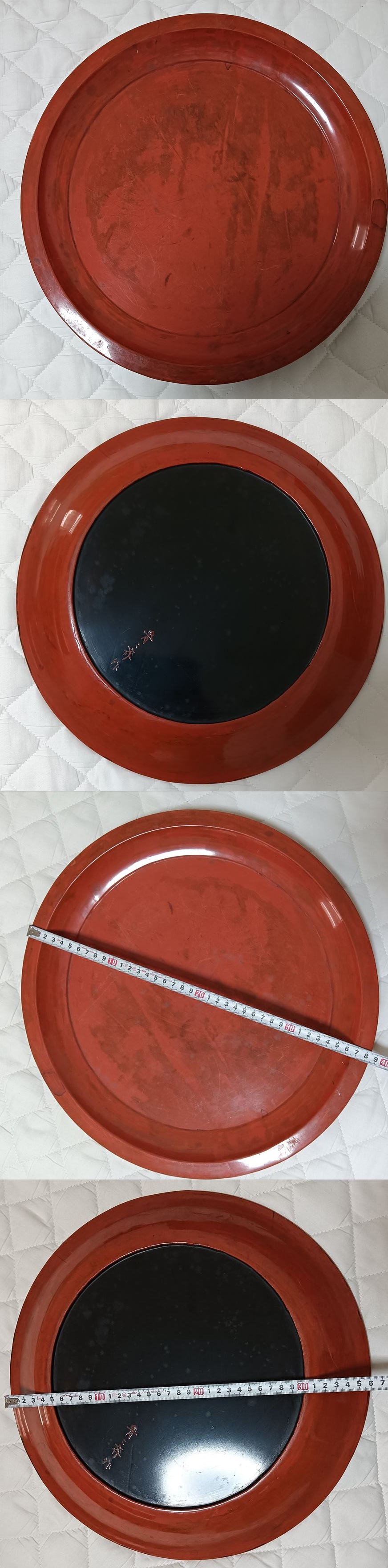 古い 漆塗り 根来塗 丸盆 藪内家 十三代 青々斎 竹仲紹智 (1936~2018) 朱色が華やぎを演出する(漆器、トレー)