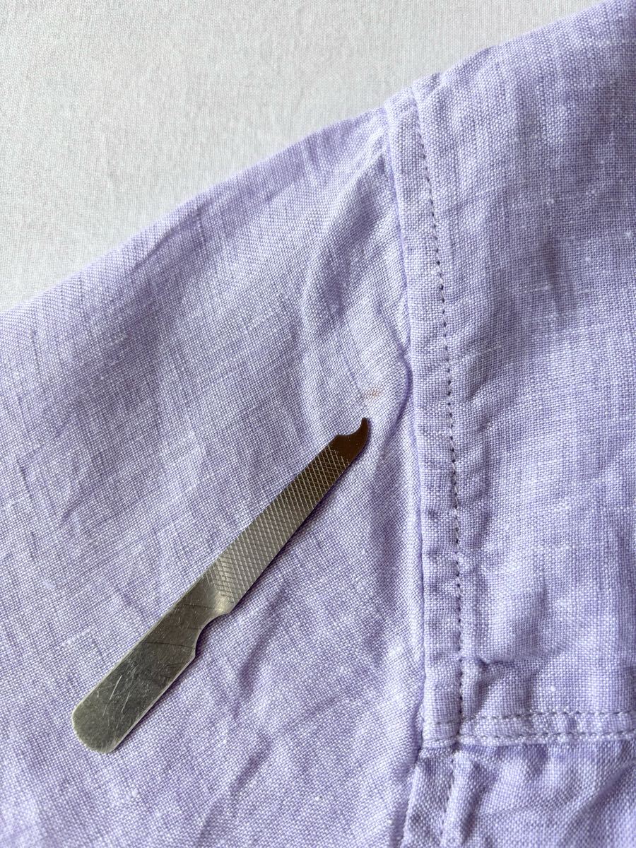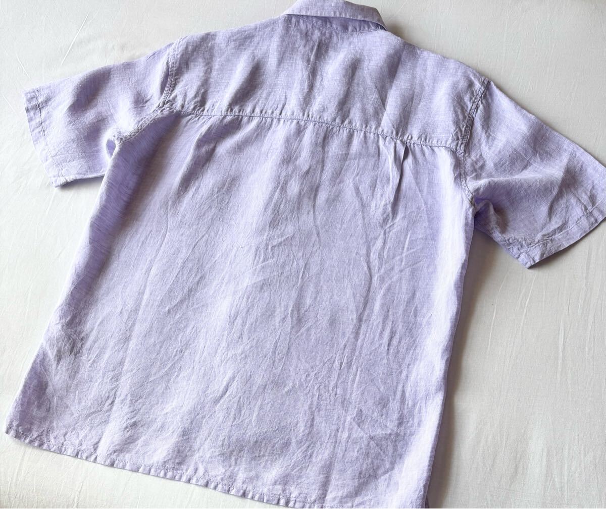リネン100%の平織生地を使用した、オープンカラーのシャツです。