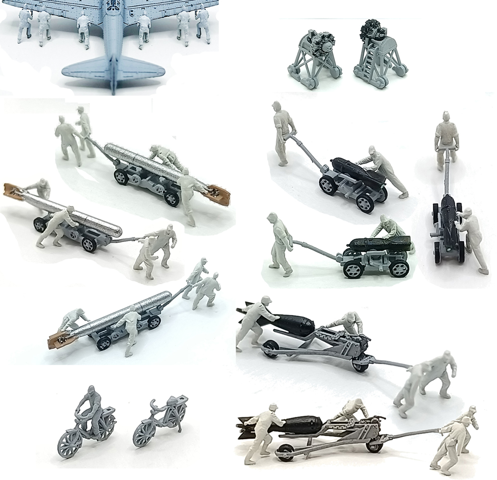 爆装・雷装、エンジン整備、飛行機周りの整備員と機材など、2~4組入っています。