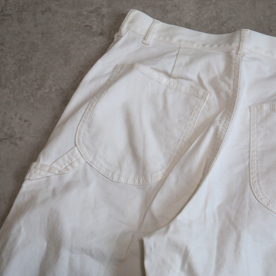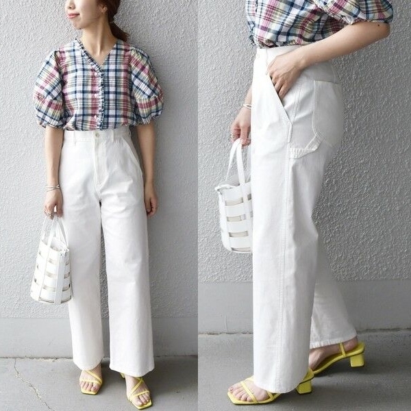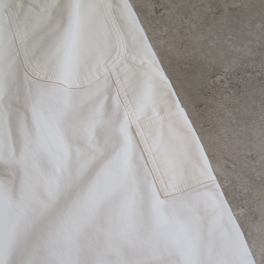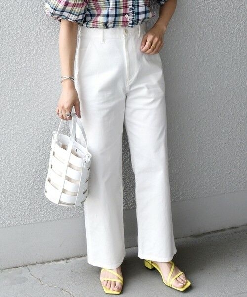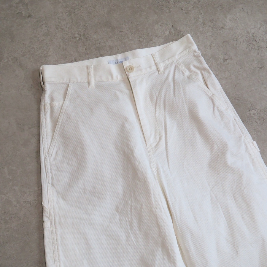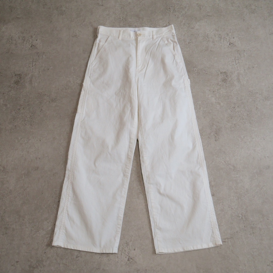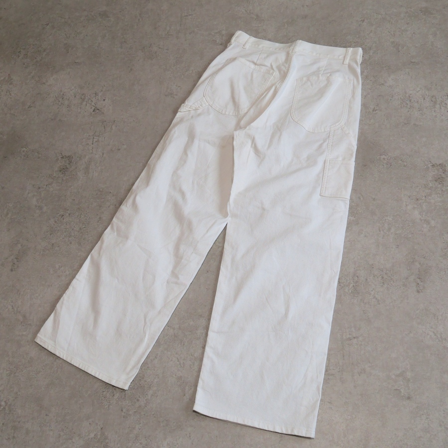 ハンマーループなどの本格的なワークディテールを効かせたペインターパンツ。 表面に凹凸のあるピケ素材を使用。カジュアルなムードがありながらも、腰回りをすっきりとさせ、ストンと落ちるストレートワイドシルエットは女性らしい印象に。