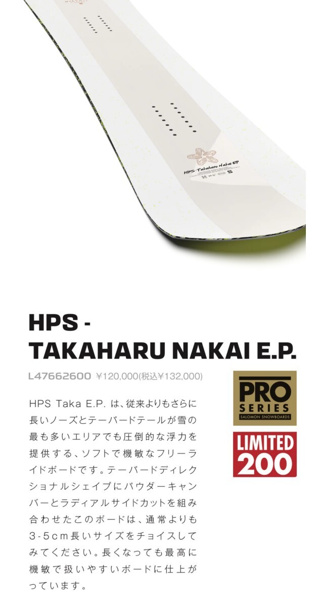 レア 新品 未使用 サロモン SALOMON HPS TAKA E.P. モデル パウダー TAKAHARU NAKAI EP 希少 限定 LTD 164cm フリー スタイル 山 ボード 板 雪 白